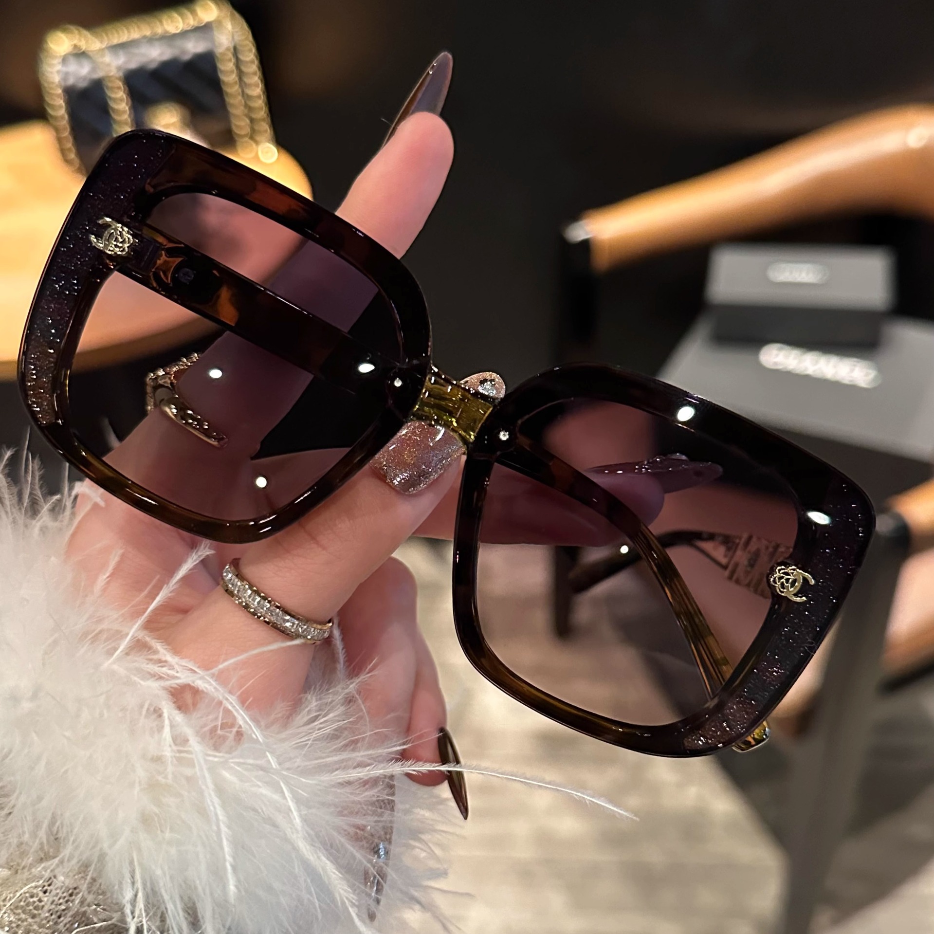라이브 [향기로운 럭셔리 시리즈] 가벼운 럭셔리 하이 엔드 운전 여행 편광 선글라스 자외선 차단 선글라스 여성 올매치스토어 가기