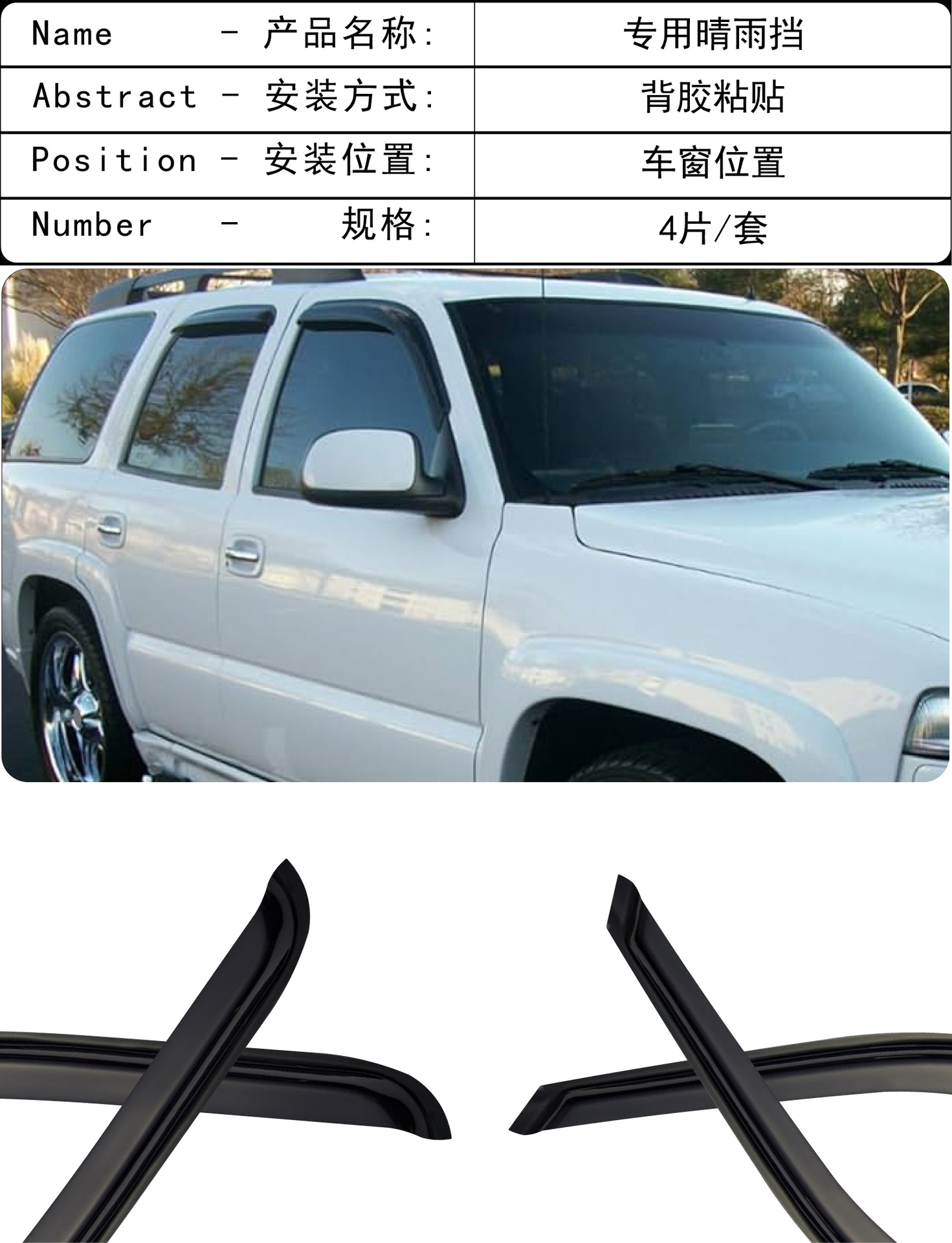 2002-2025년형 쉐보레 타호 차량용 내장형 타호 자동차 윈도우 바이저(비/햇빛 가리개)는 국경을 넘어 적용 가능합니다.