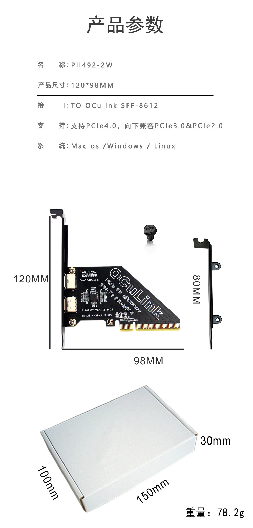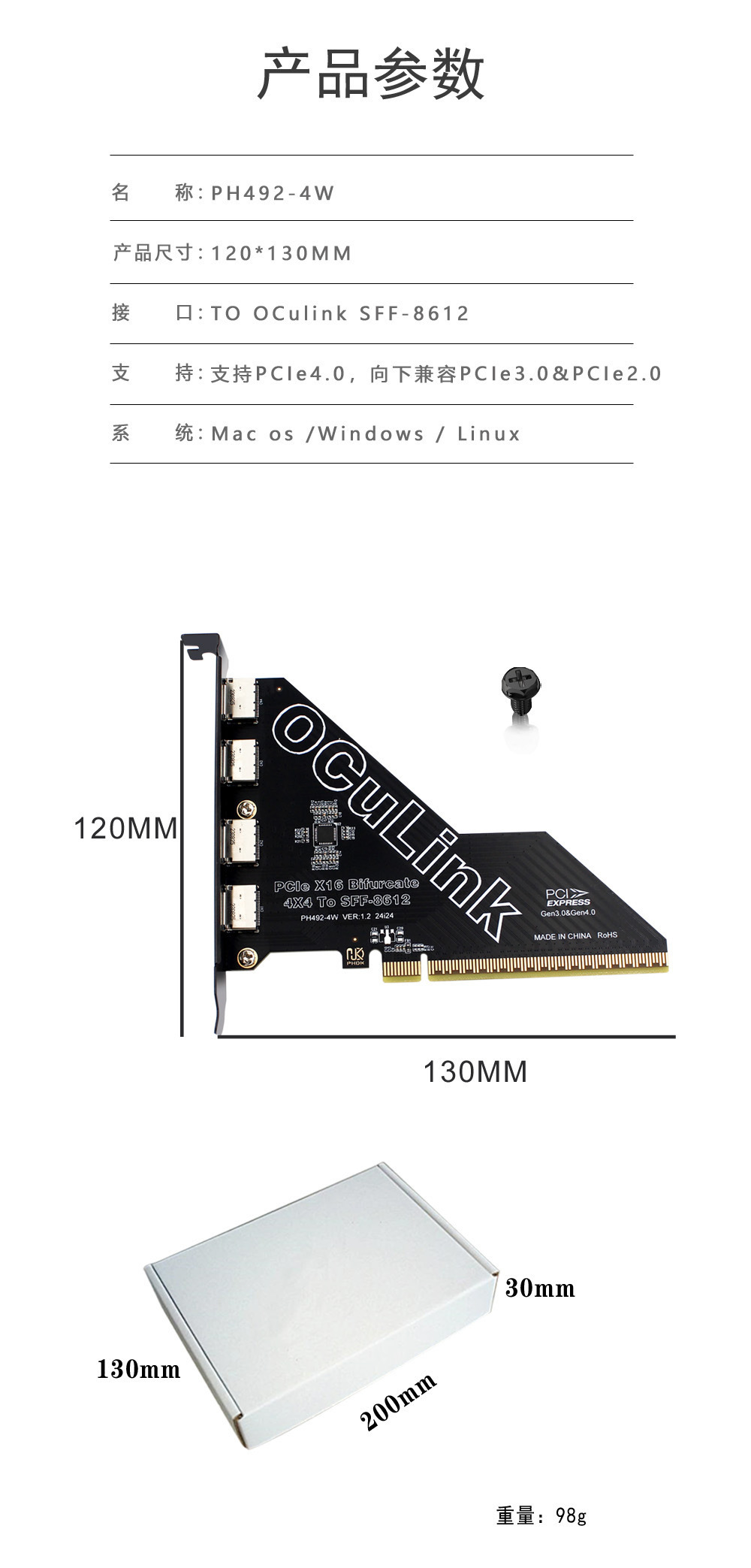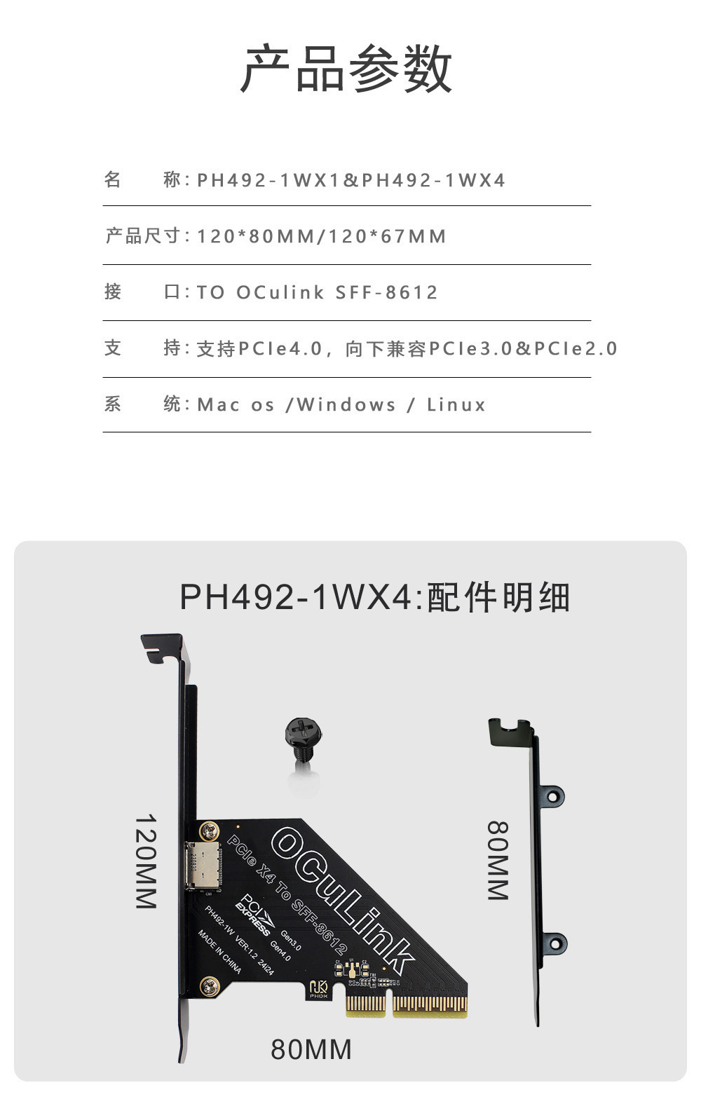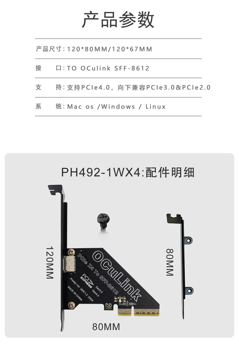 외부 그래픽 카드 PCIe X16 분할 4포트 SFF8611 및 8612 Oculink 확장 카드 외부 U.2SSD