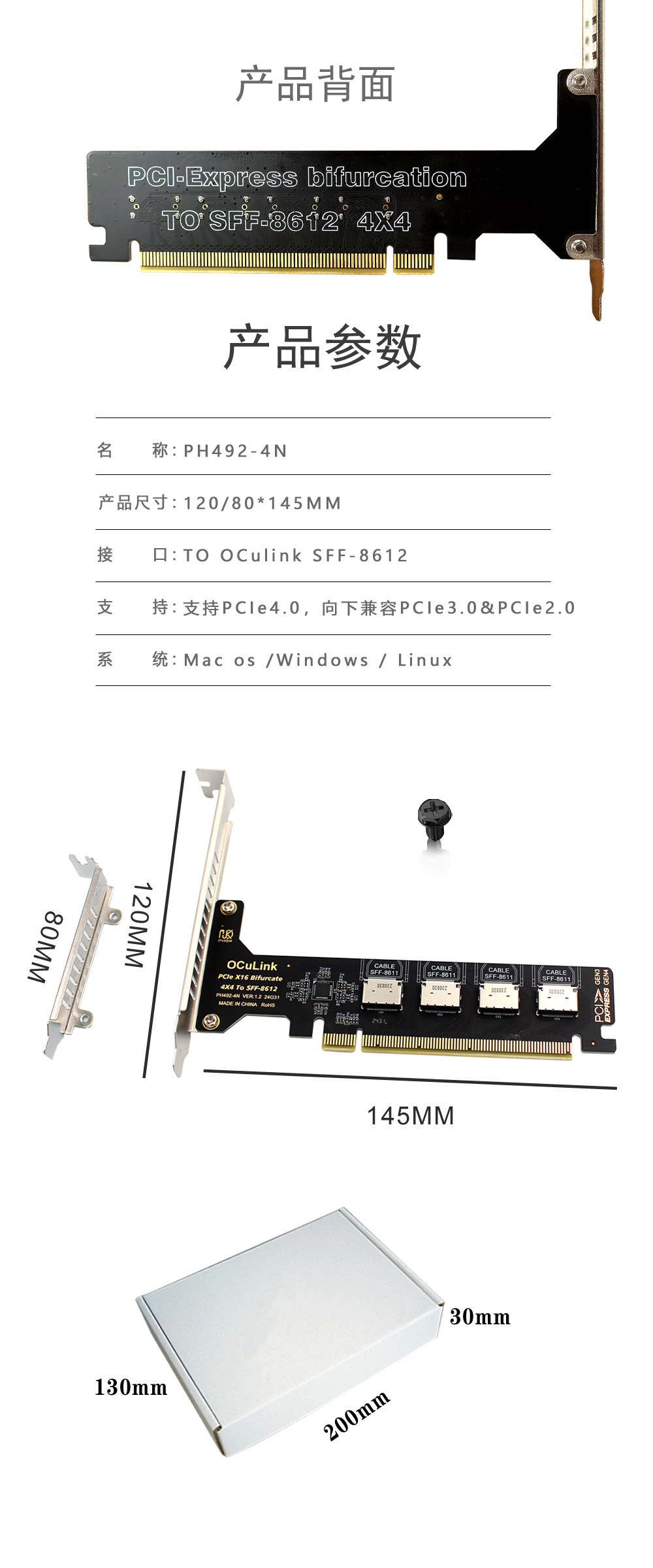 외부 그래픽 카드 PCIe X16 분할 4포트 SFF8611 및 8612 Oculink 확장 카드 외부 U.2SSD스토어 가기