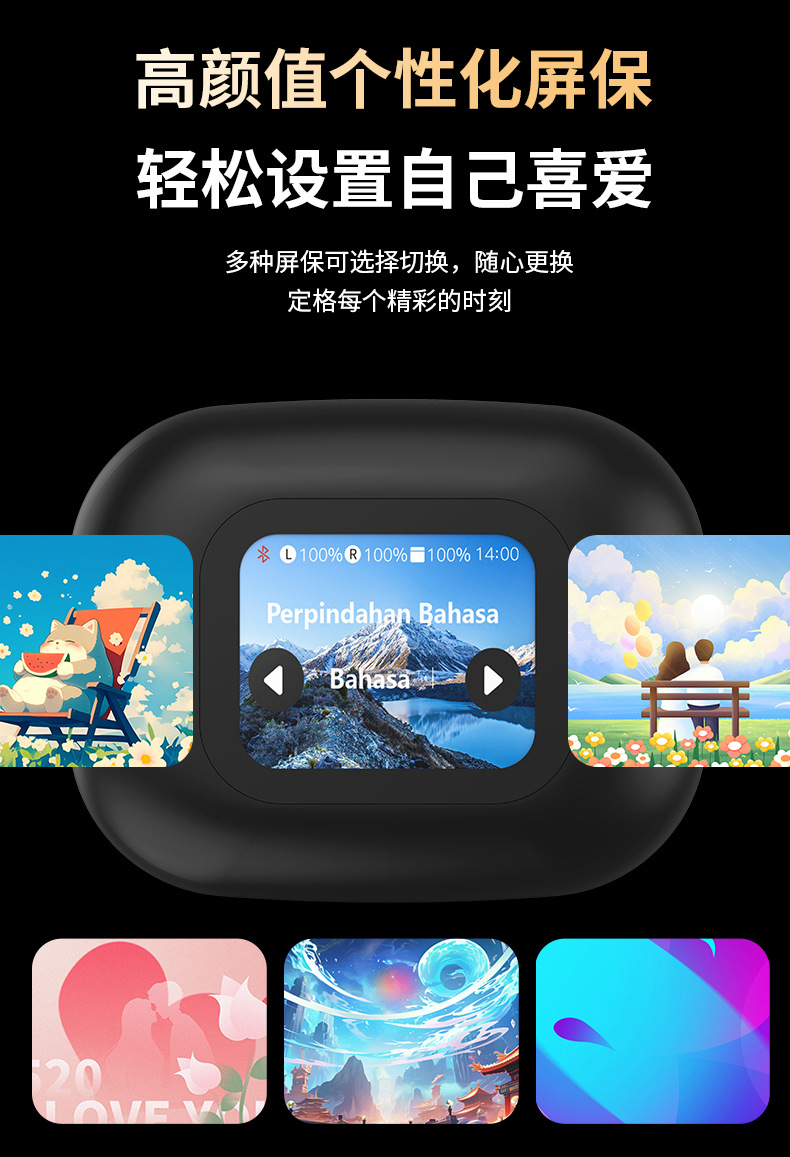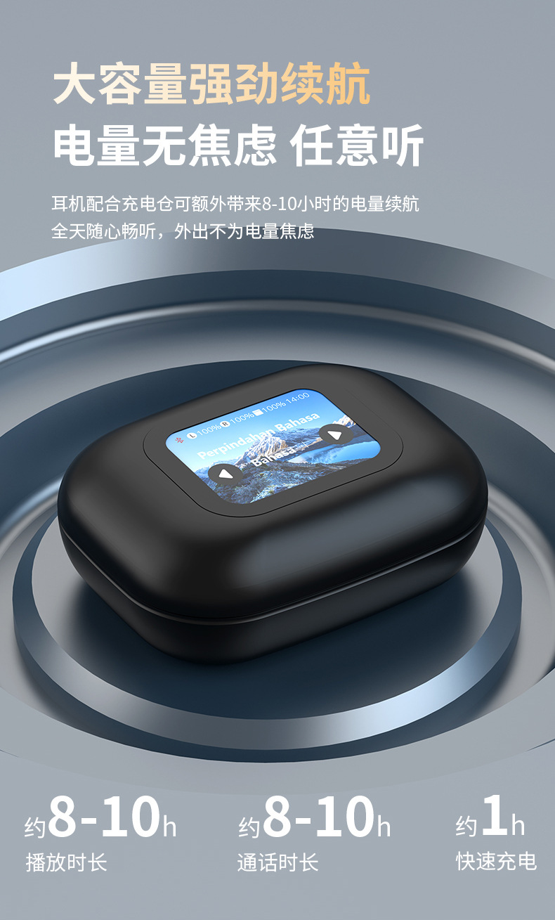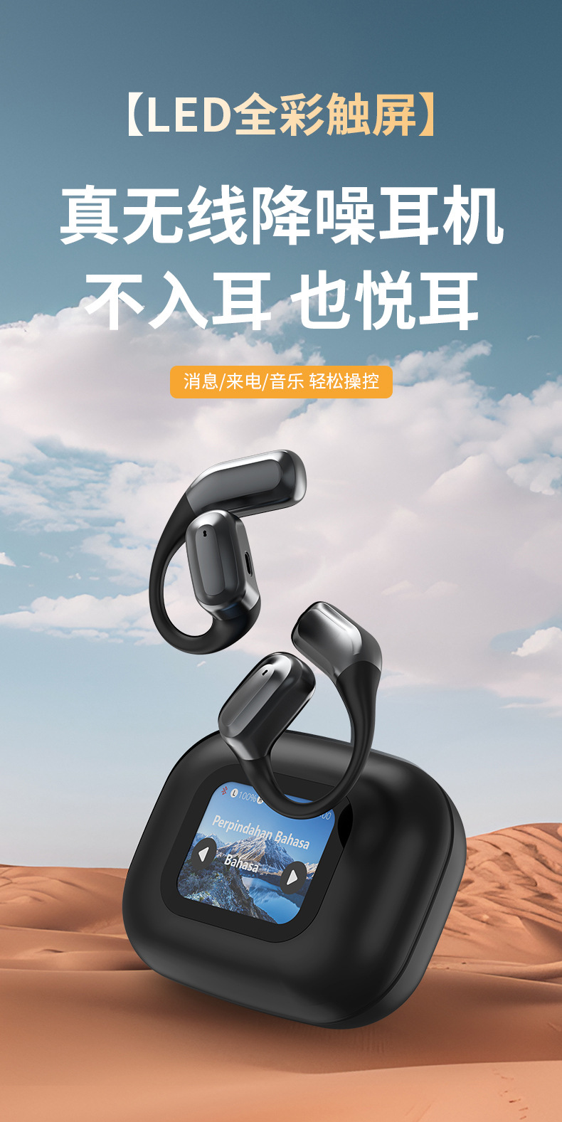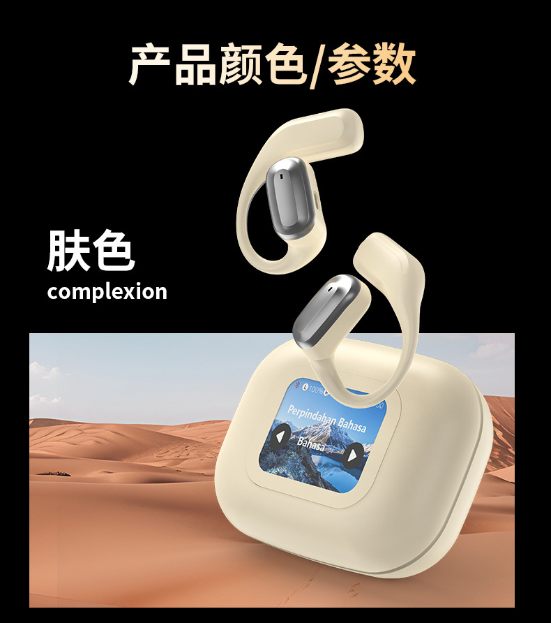 새로운 AI 지능형 번역 Bluetooth 헤드셋 LED 컬러 스크린 무선 귀 장착형 스포츠 초장기 배터리 수명 국경 간 소음 감소