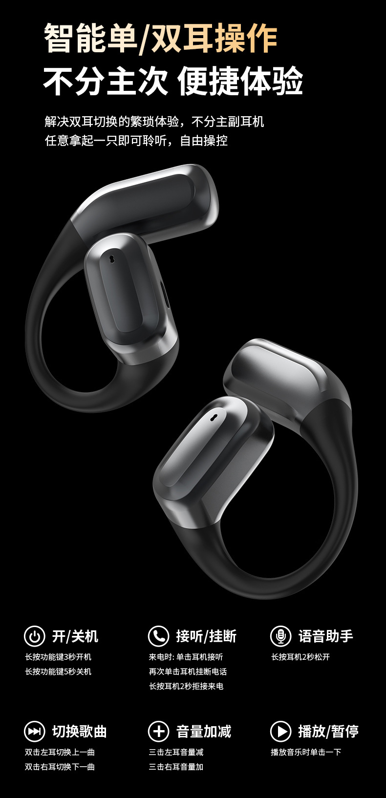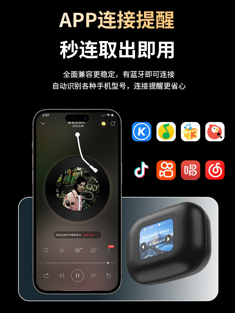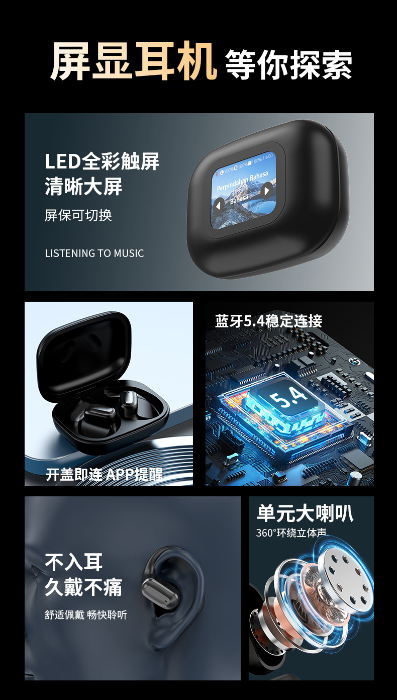 새로운 AI 지능형 번역 Bluetooth 헤드셋 LED 컬러 스크린 무선 귀 장착형 스포츠 초장기 배터리 수명 국경 간 소음 감소