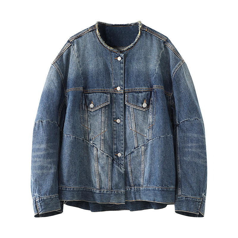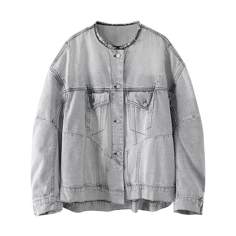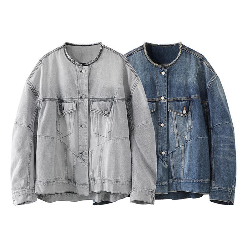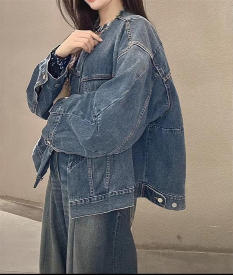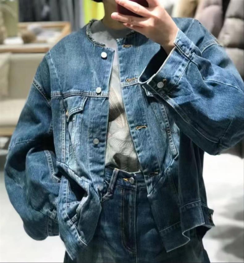 2024 봄 새로운 스타일 트렌디 스트리트 스타일 느슨하고 단단한 데님 재킷 코튼 작은 향기 디자인 재킷 여성용스토어 가기