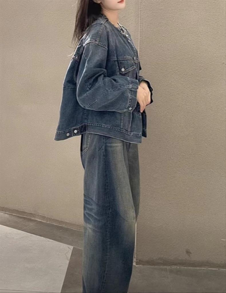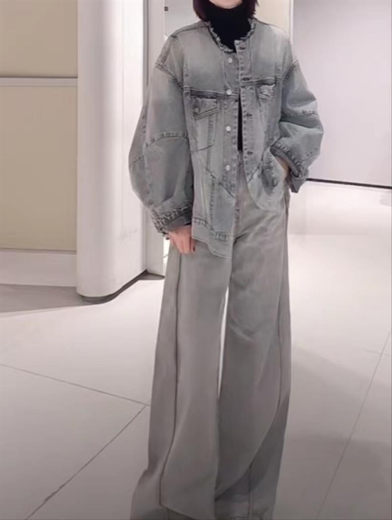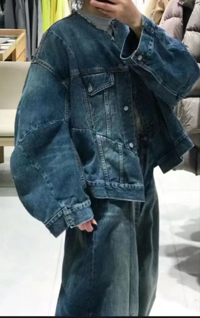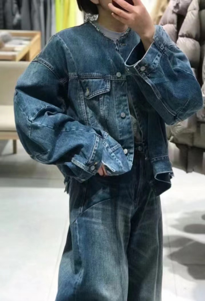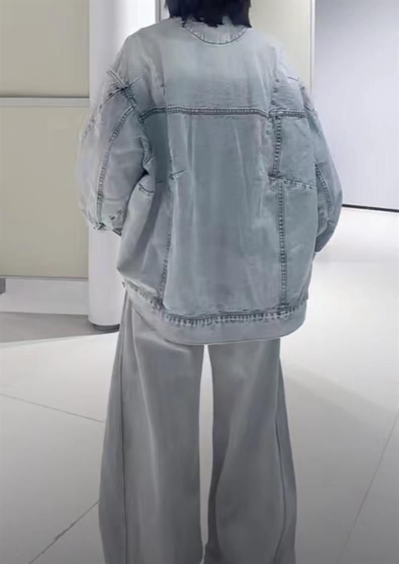 2024 봄 새로운 스타일 트렌디 스트리트 스타일 느슨하고 단단한 데님 재킷 코튼 작은 향기 디자인 재킷 여성용스토어 가기
