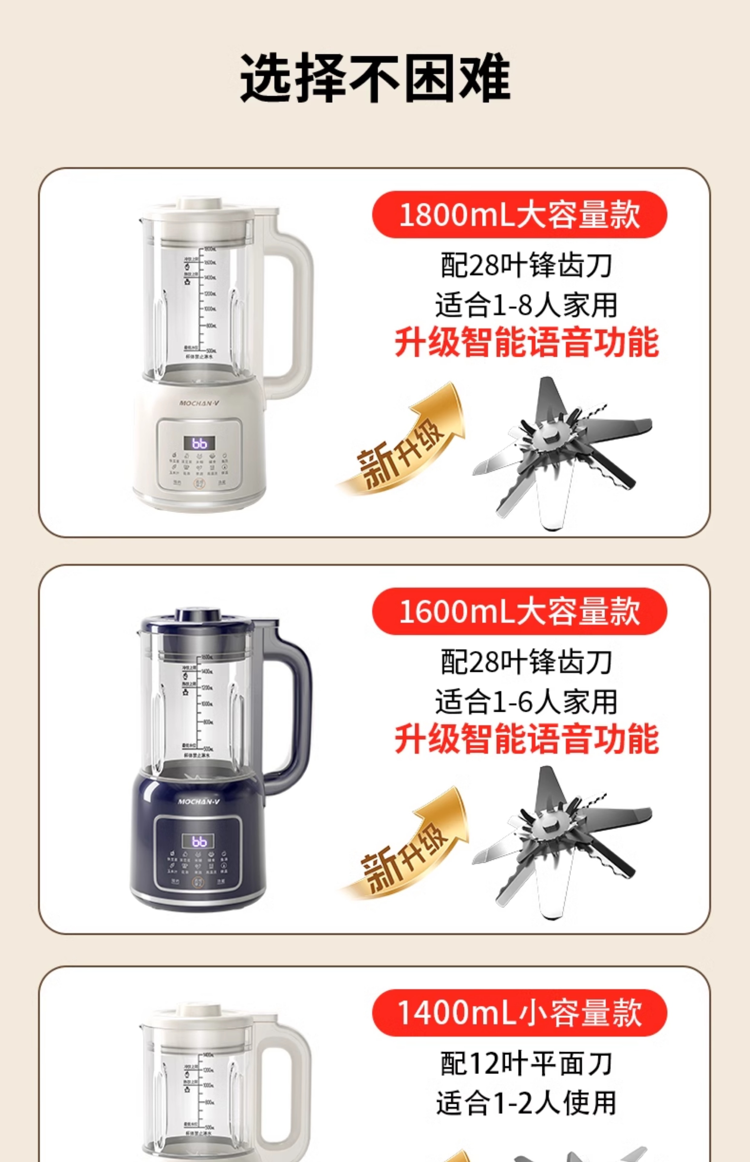 • [사파이어 블루] 새롭게 업그레이드된 음성 모델 + 1.8L 대용량 + 필터가 없는 28잎 스테인레스 칼
