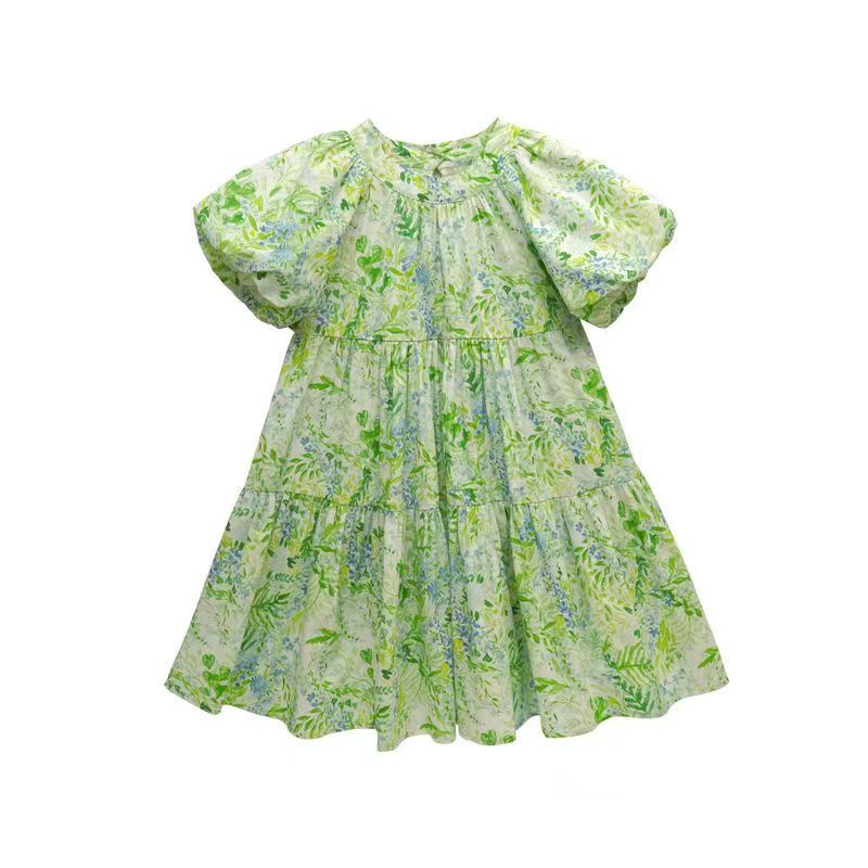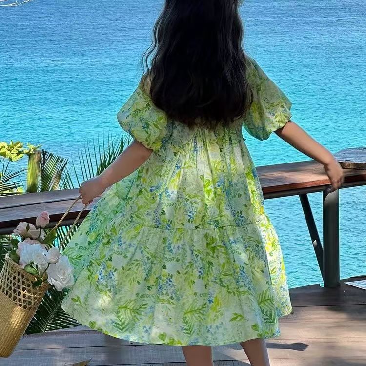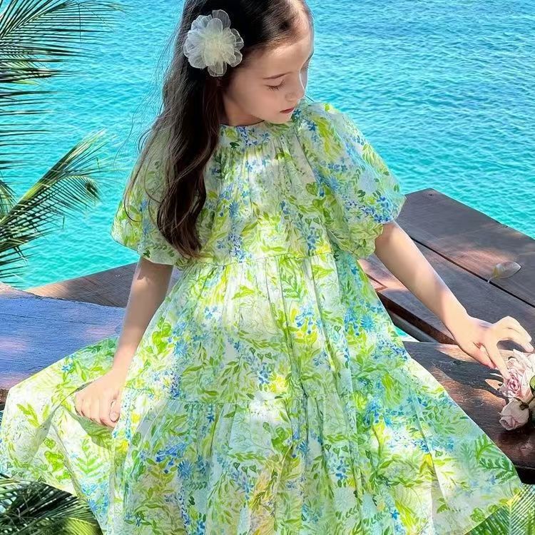 소녀의 2025 여름 새로운 어린이 스타일러스 원피스 퍼프 슬리브 공주 꽃 느슨한 달콤한 원피스스토어 가기