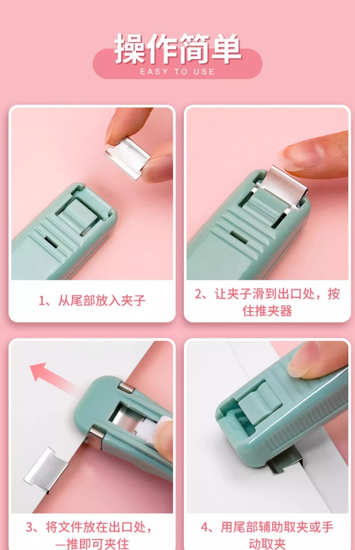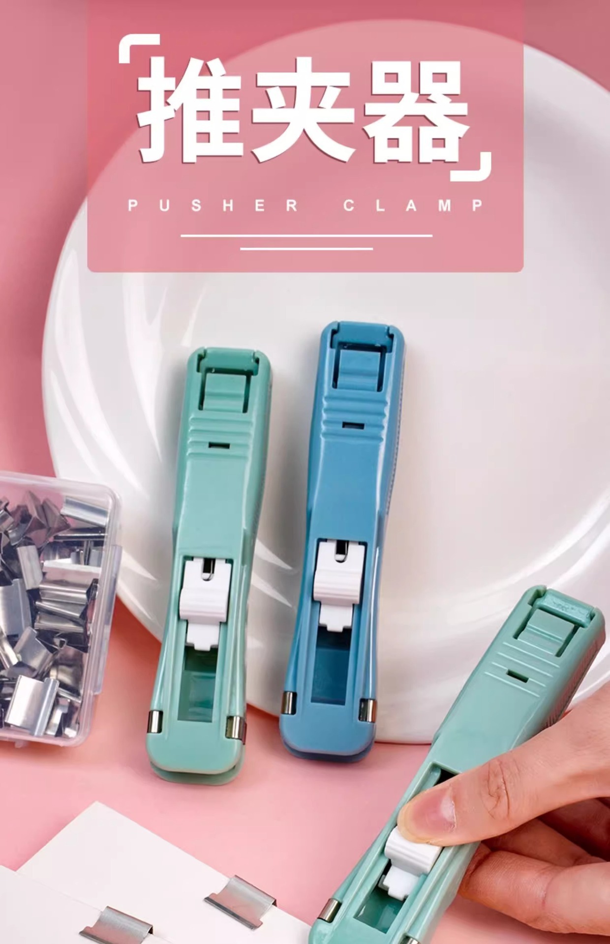 못이 없는 푸시 클립 파일 소형 클립 문구 고정 시험지 용품 스테이플러 바인딩 금속 스테이플 티켓 도서