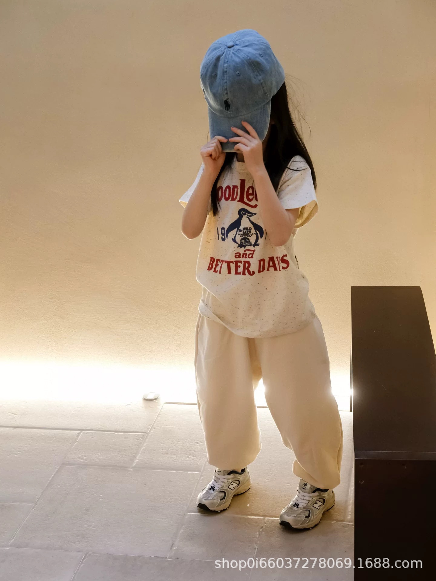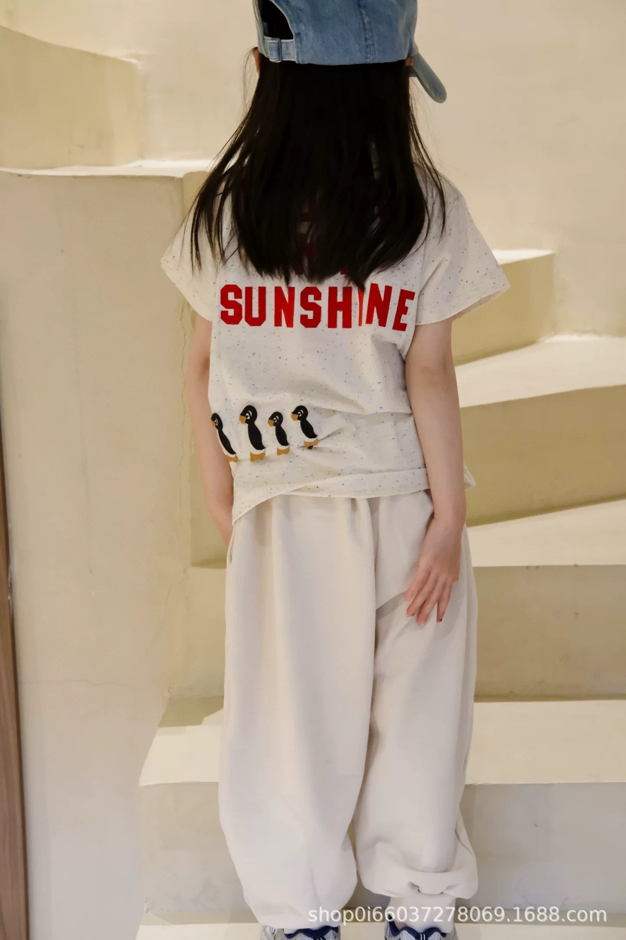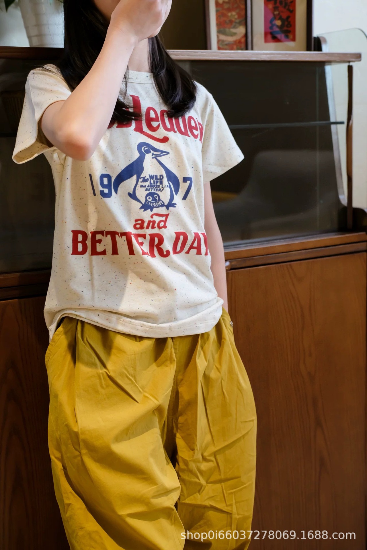 소년과 소녀 여름 반팔 티셔츠 DD 같은 스타일 일본 유행 브랜드 어린이 알파벳 플록 1978 펭귄 자수 티셔츠스토어 가기