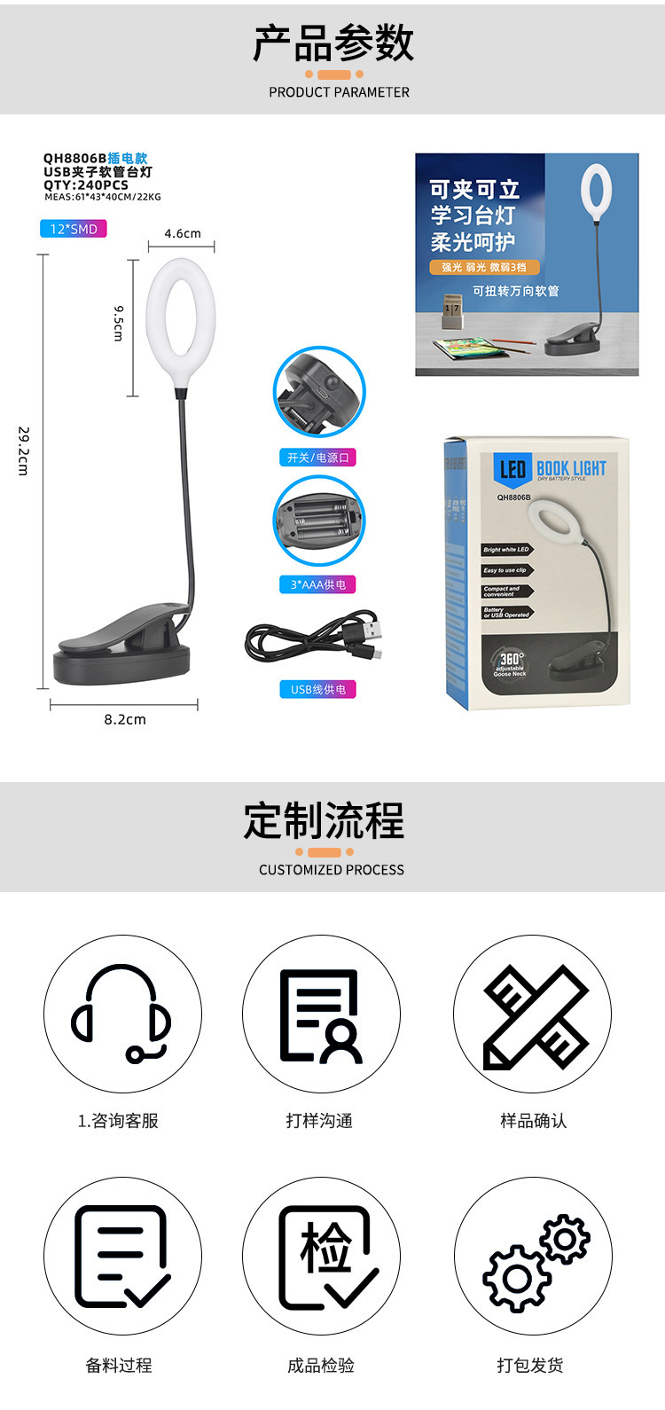 눈 보호용 LED 책상 램프, 학생 독서, 매니큐어 및 미용, 셀카 보조 조명, 돋보기, 데스크탑 클립 램프, 도매 없음스토어 가기