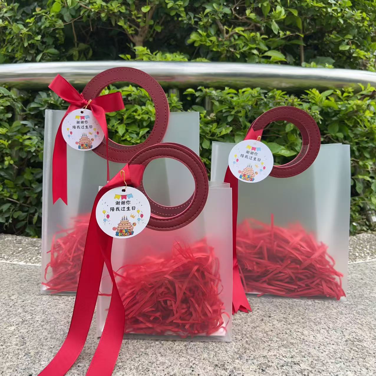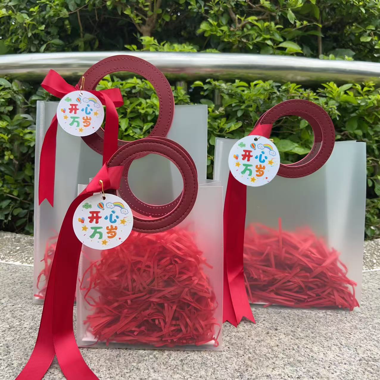 手提袋需要自己绑丝带、分装拉菲草、挂吊牌哦。吊牌可以换:有生日吊牌、开心万岁吊牌、未来可期吊牌、平安喜乐吊牌。