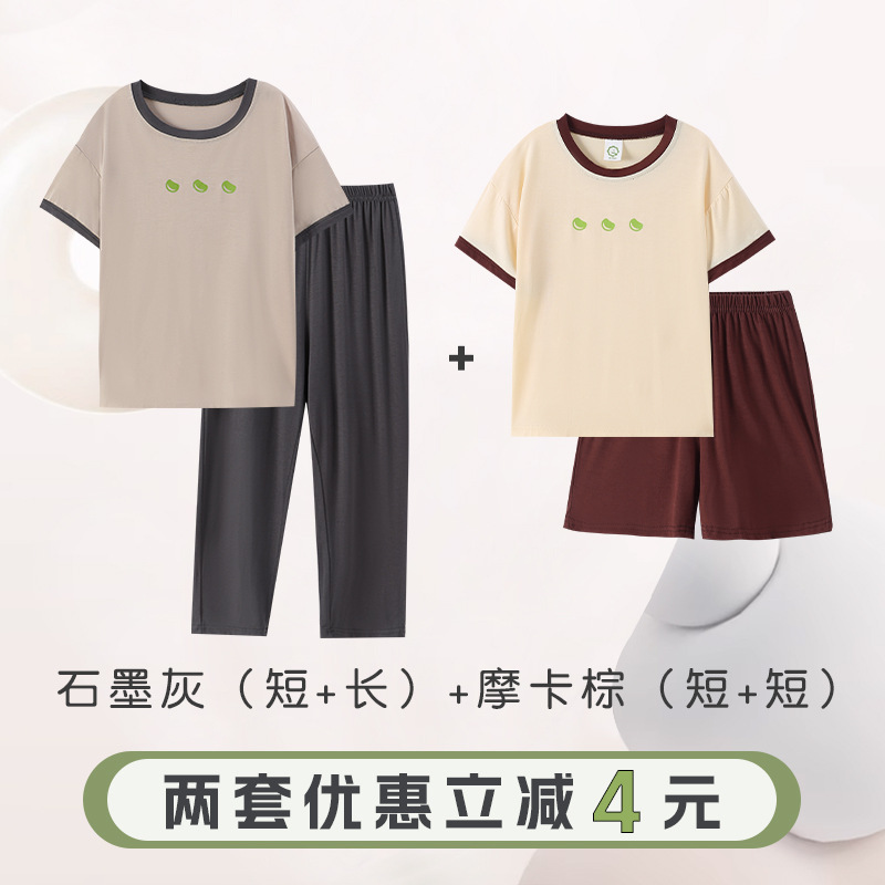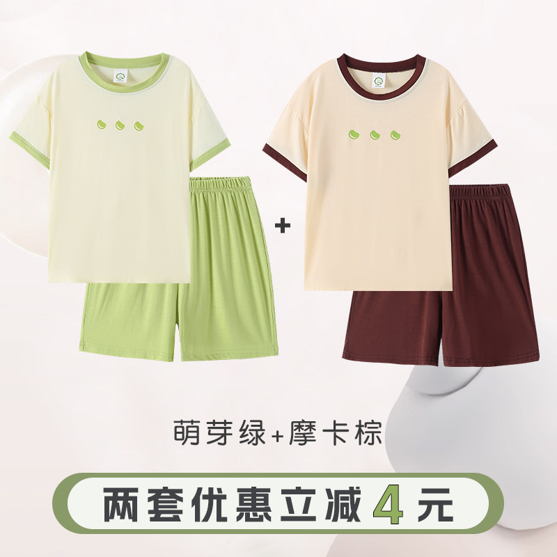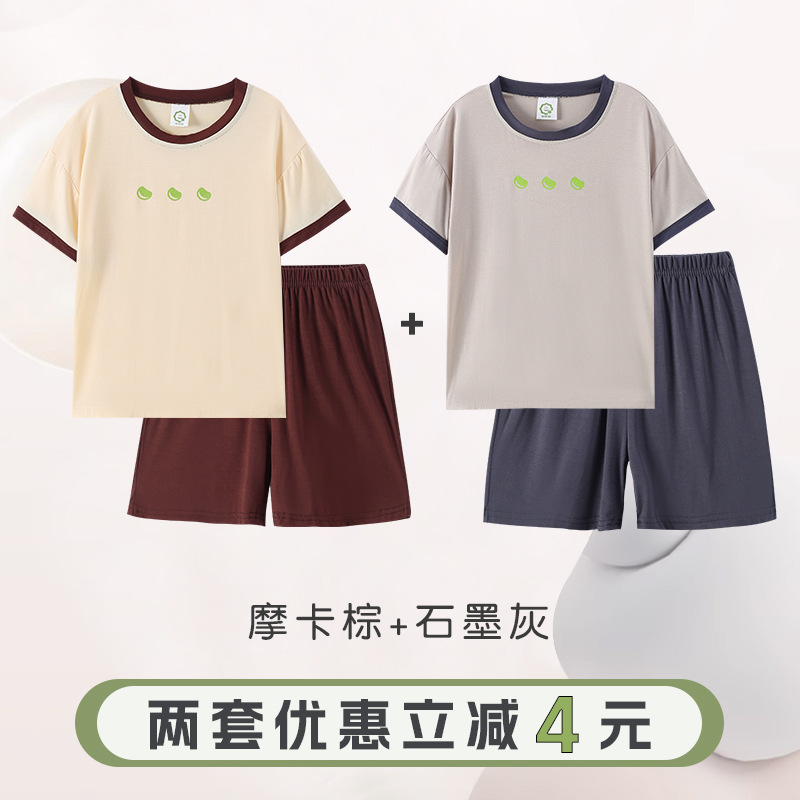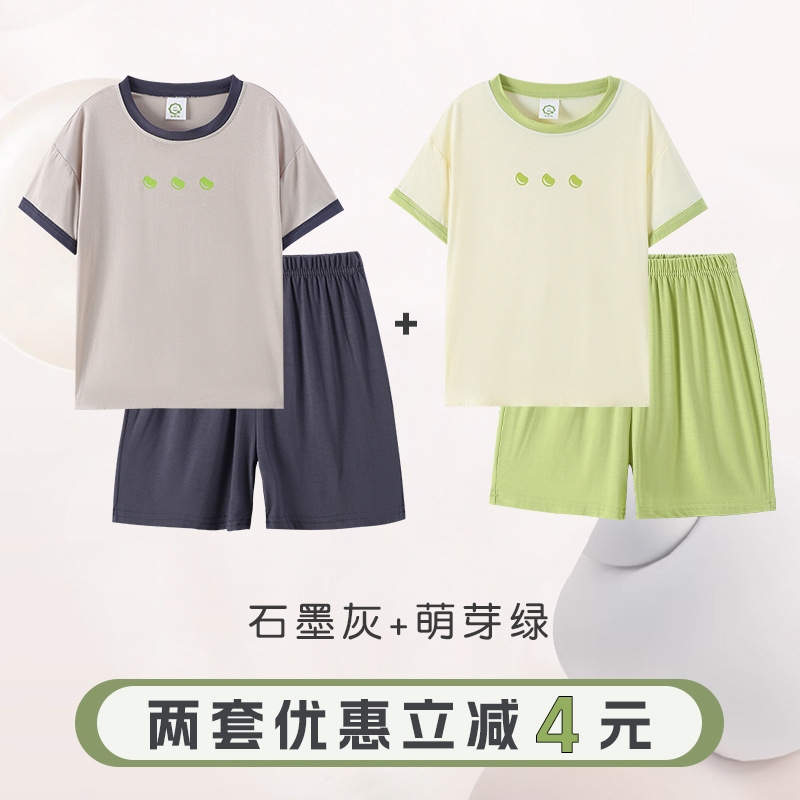 반팔 반바지 바지 아동용 잠옷 소년 얇은 가정복 소년 잠옷 소녀 중대형 어린이 봄 가을 여름스토어 가기