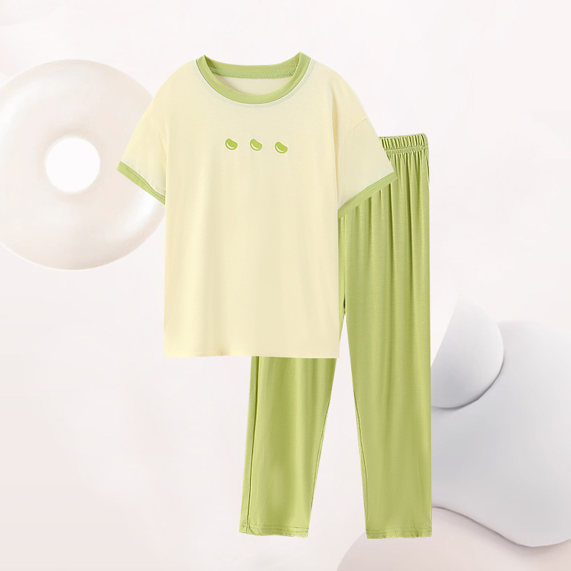 반팔 반바지 바지 아동용 잠옷 소년 얇은 가정복 소년 잠옷 소녀 중대형 어린이 봄 가을 여름