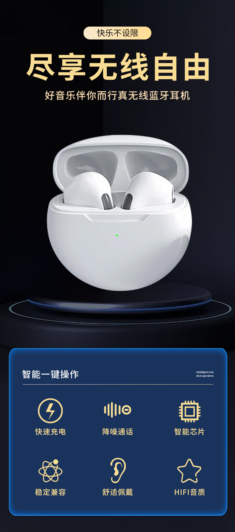 맞춤형 Pro6 무선 블루투스 헤드셋 소음 감소 스테레오 5.3 HD 통화 바이노럴 TWS 게임용 헤드셋스토어 가기