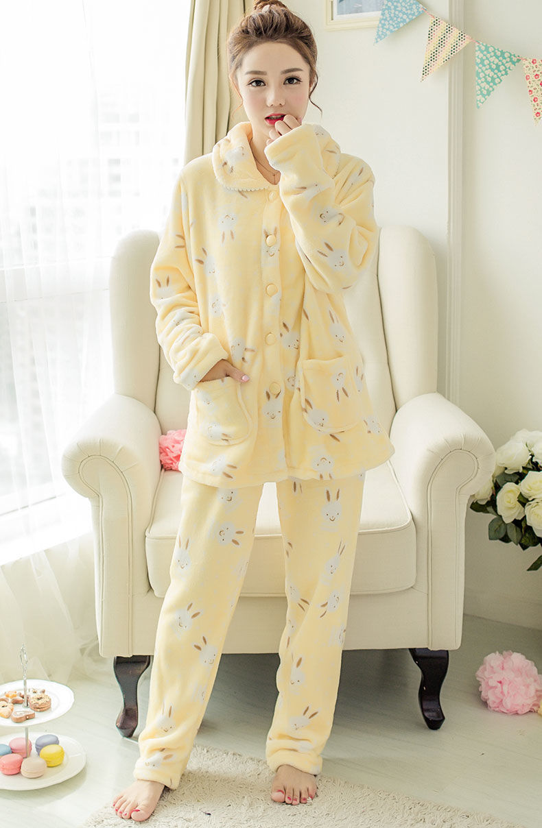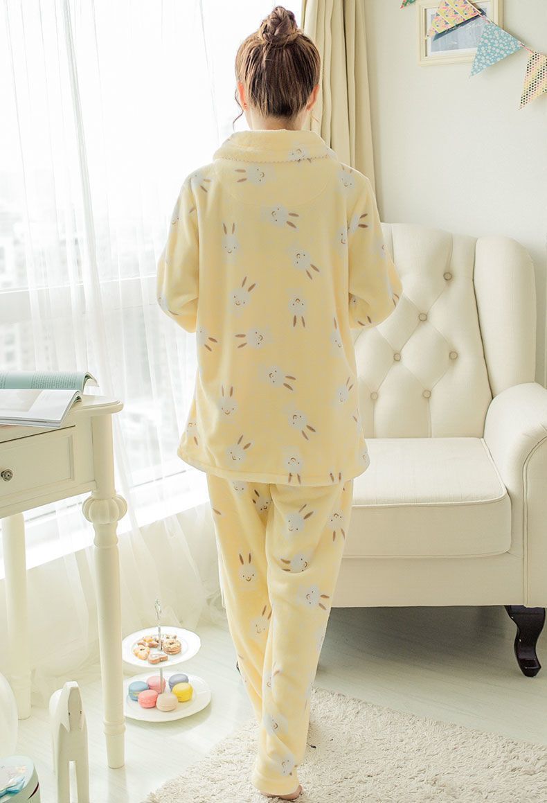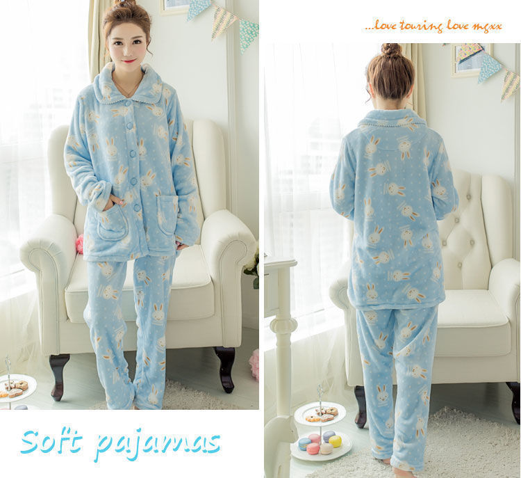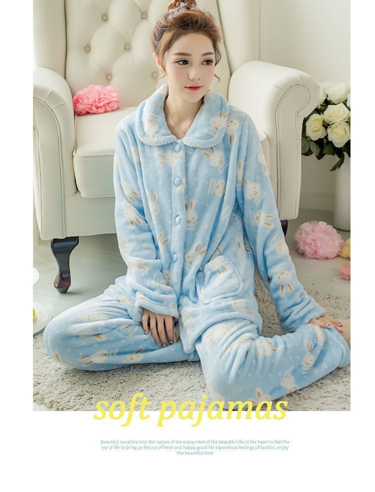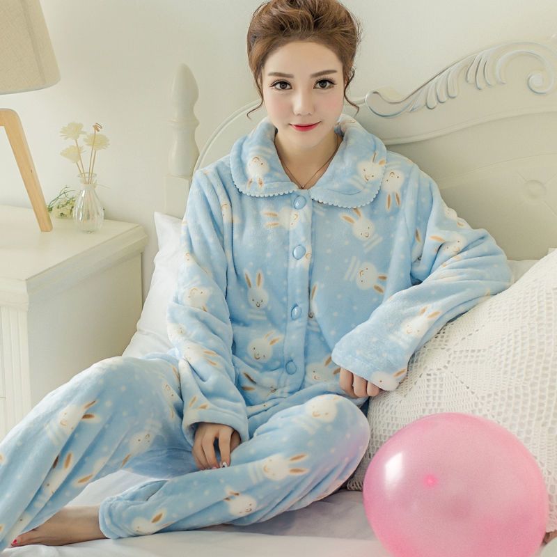 여성용 잠옷 가을, 겨울 산호 벨벳 귀엽고 달콤한 두꺼운 한국 플란넬 따뜻한 만화 대형 홈웨어 세트스토어 가기