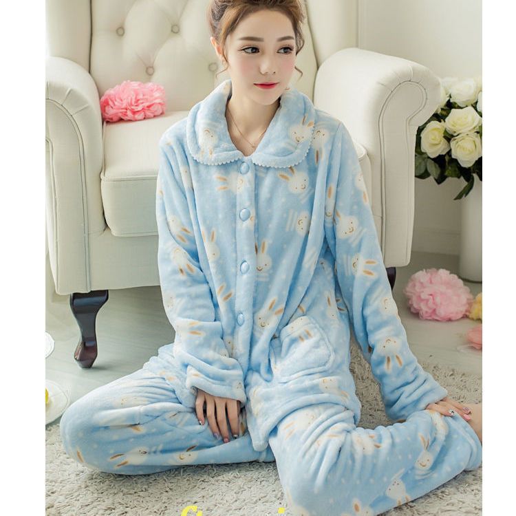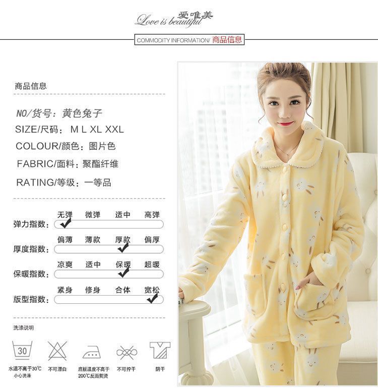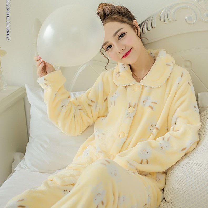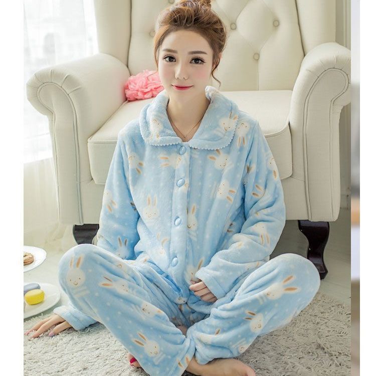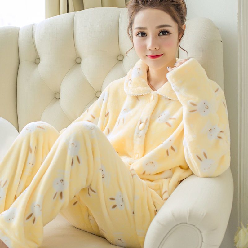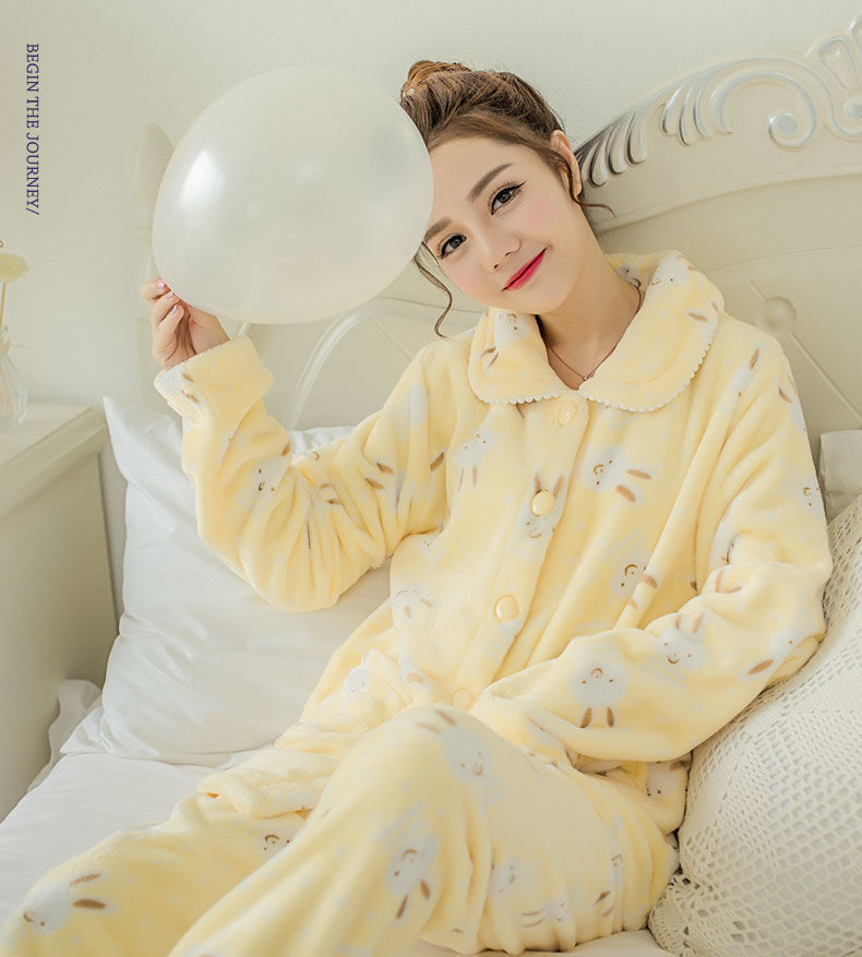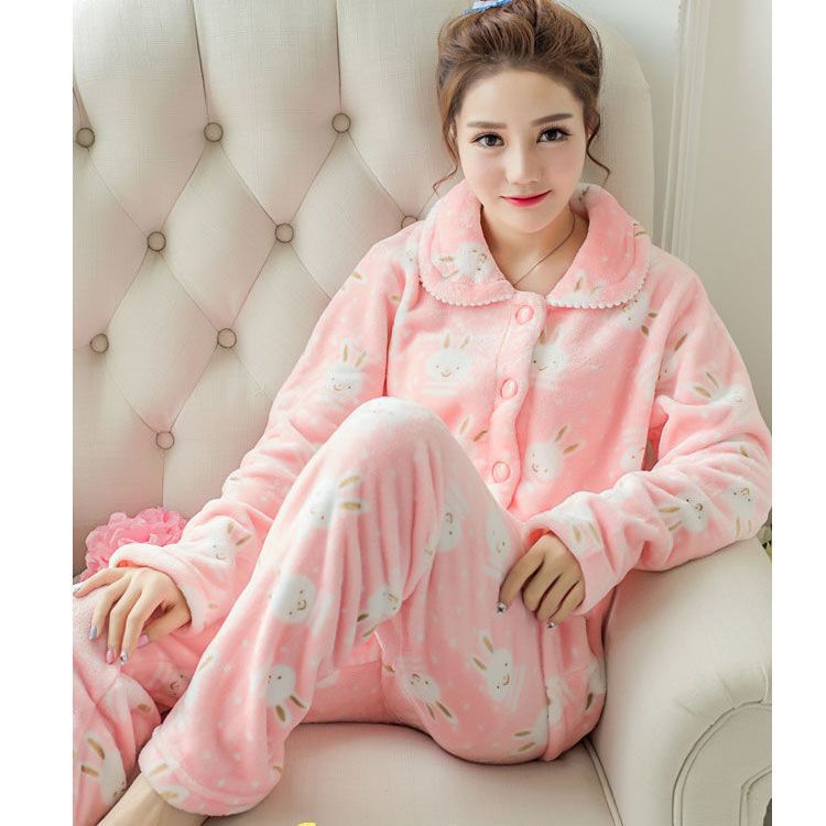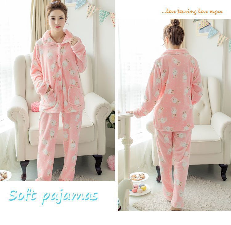 여성용 잠옷 가을, 겨울 산호 벨벳 귀엽고 달콤한 두꺼운 한국 플란넬 따뜻한 만화 대형 홈웨어 세트