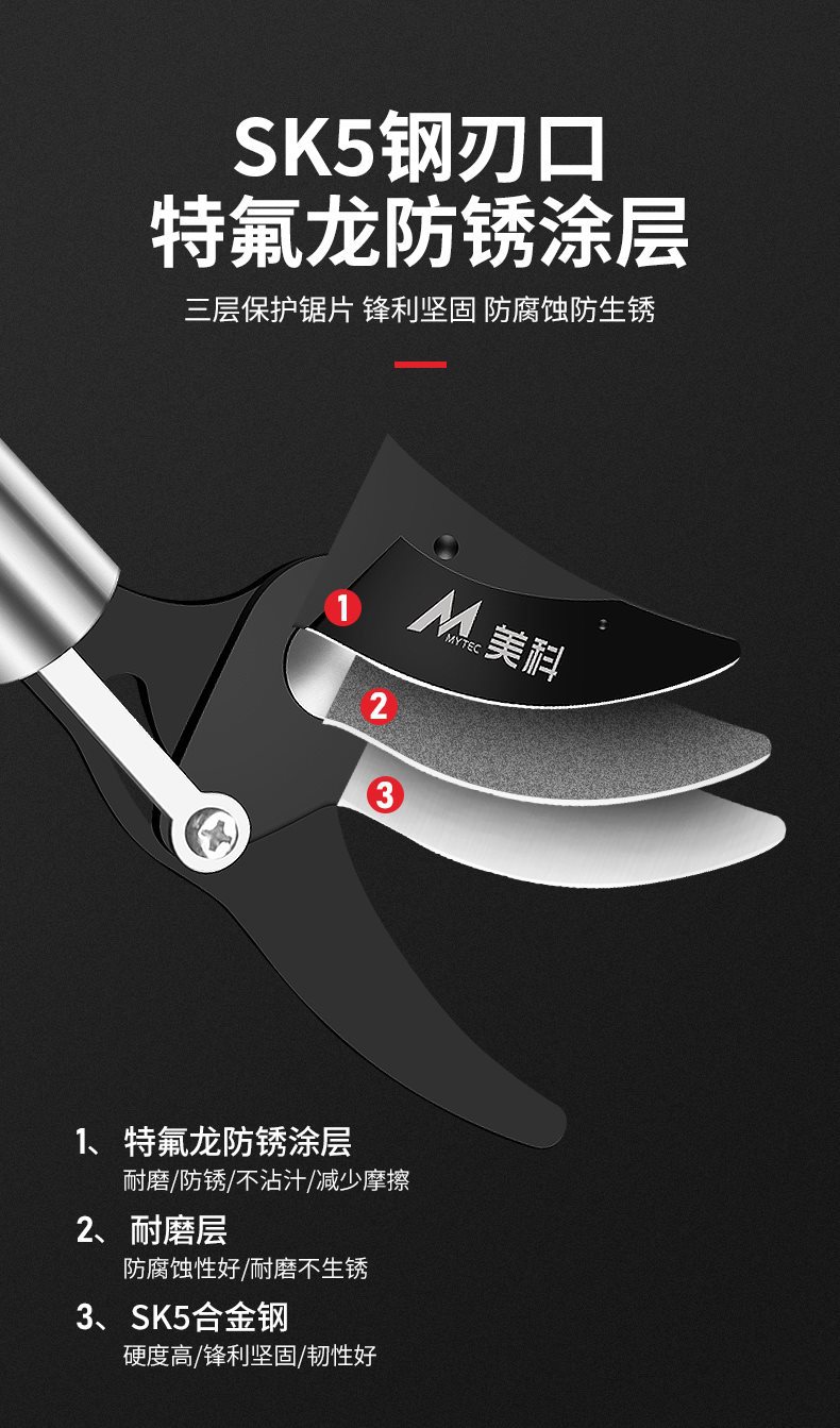 • [업그레이드된 텔레스코픽 모델] 3개 섹션 2.1-5m (톱, 전단, 따기용)
