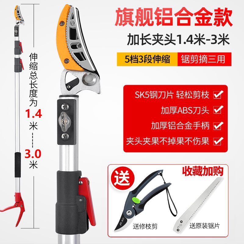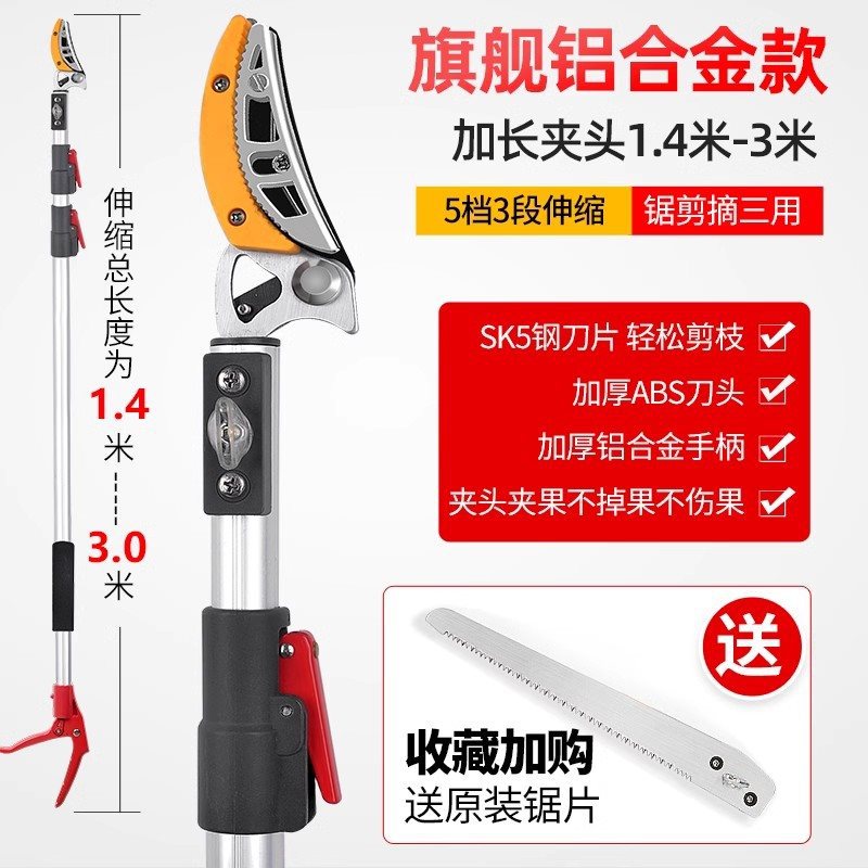 • [업그레이드된 텔레스코픽 모델] 3개 섹션 1.4-3m (톱질, 전단 및 따기용) + 과일 가지치기