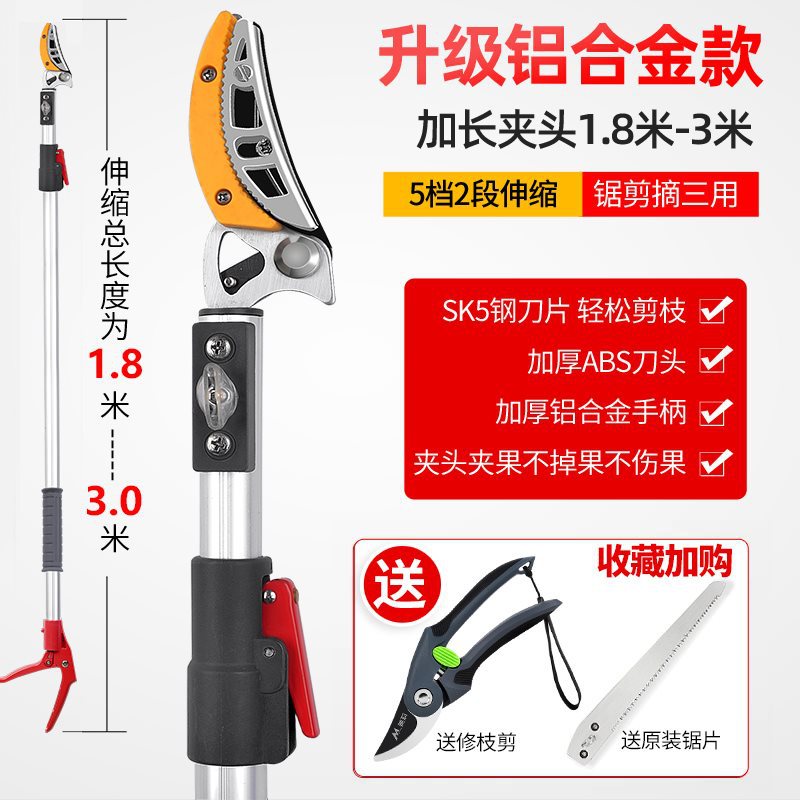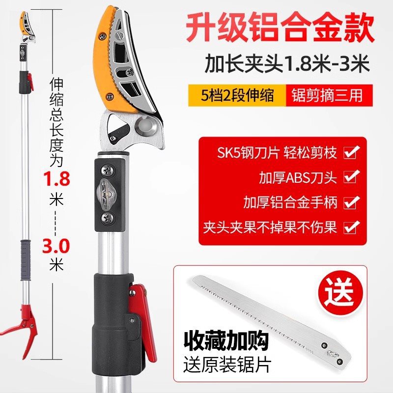 • [업그레이드된 텔레스코픽 모델] 2섹션 1.8-3m (톱질, 전단 및 따기용) + 과일 가지치기