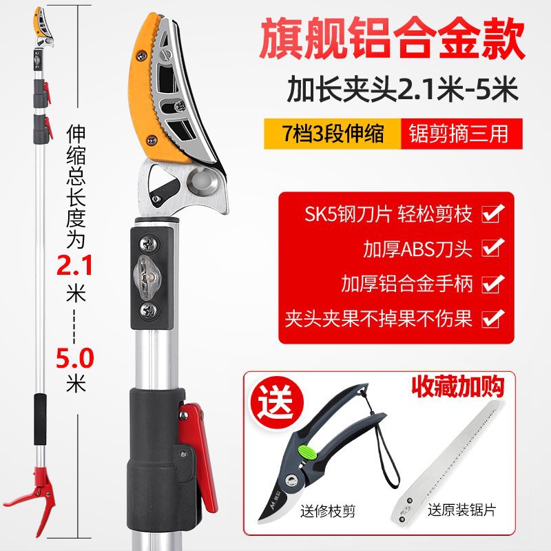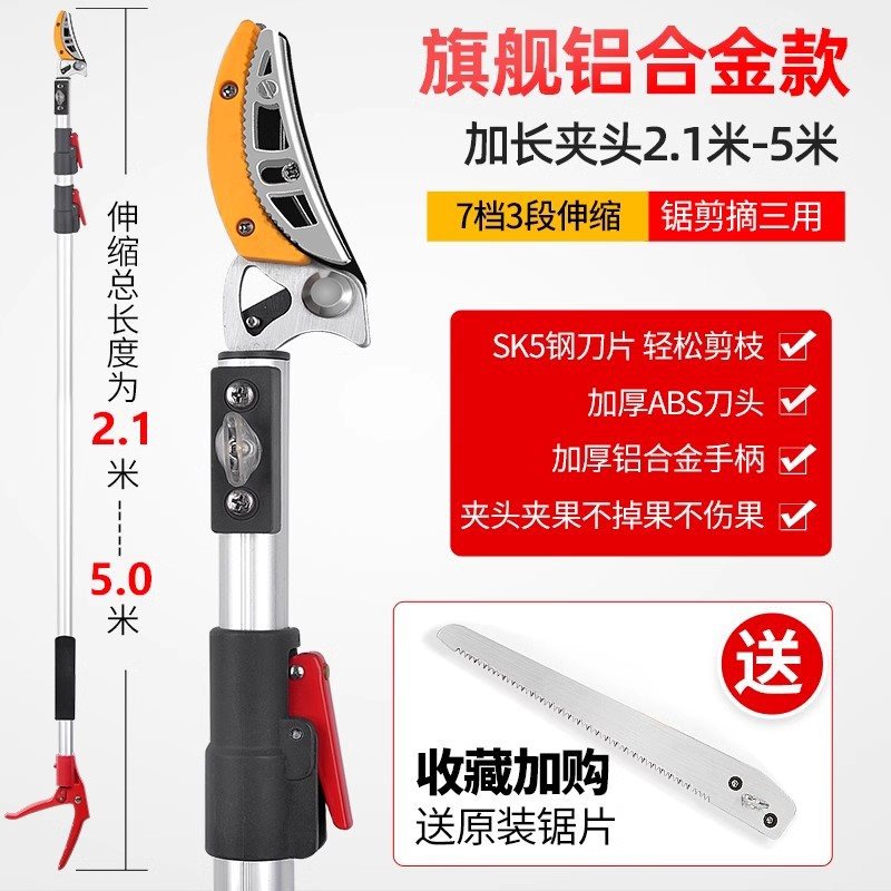 • [업그레이드된 텔레스코픽 모델] 3섹션 2.1-5m (톱, 전단, 따기용) + 과일가지가위