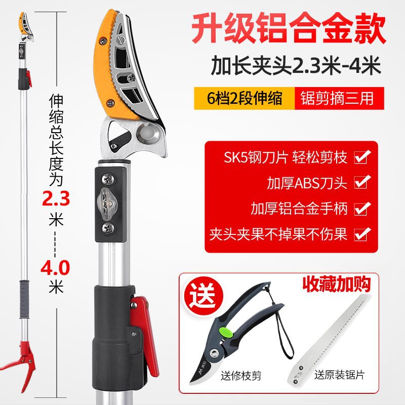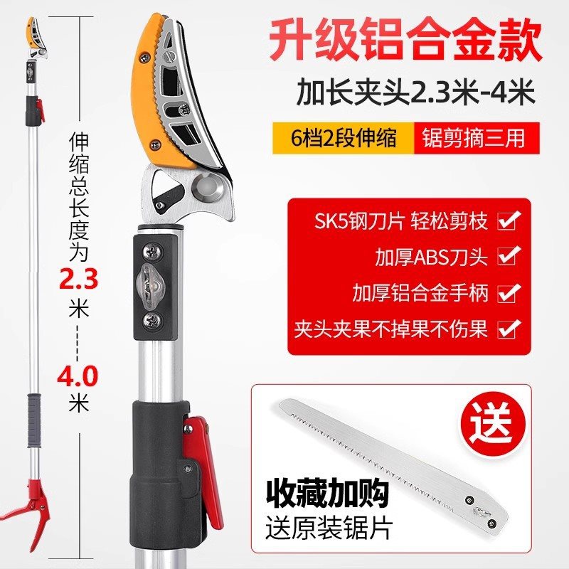 • [업그레이드된 텔레스코픽 모델] 2섹션 2.3-4m (톱질, 전단 및 따기용) + 과일 가지치기