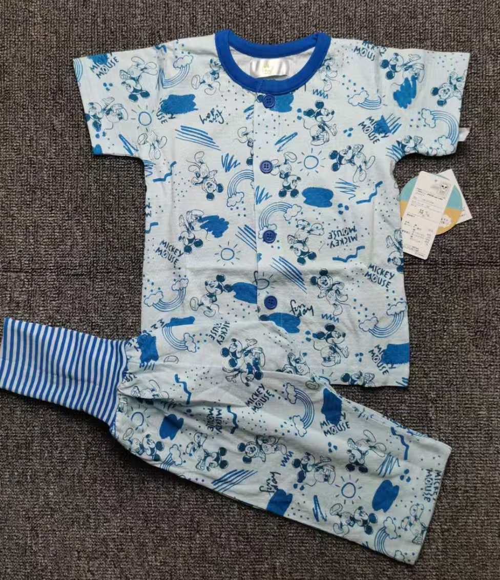 일본 싱글 소년 여름 스타일 소년 자카드 순면 반팔 반팔 바지 배꼽 보호 홈웨어 잠옷 세트스토어 가기