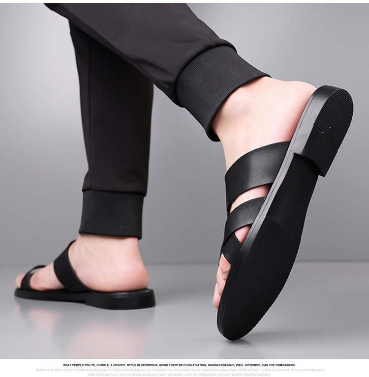 SHEIN TEMU 크로스 보더 플랫 슬리퍼 남성용 여름 외부 간단한 캐주얼 해변 샌들스토어 가기