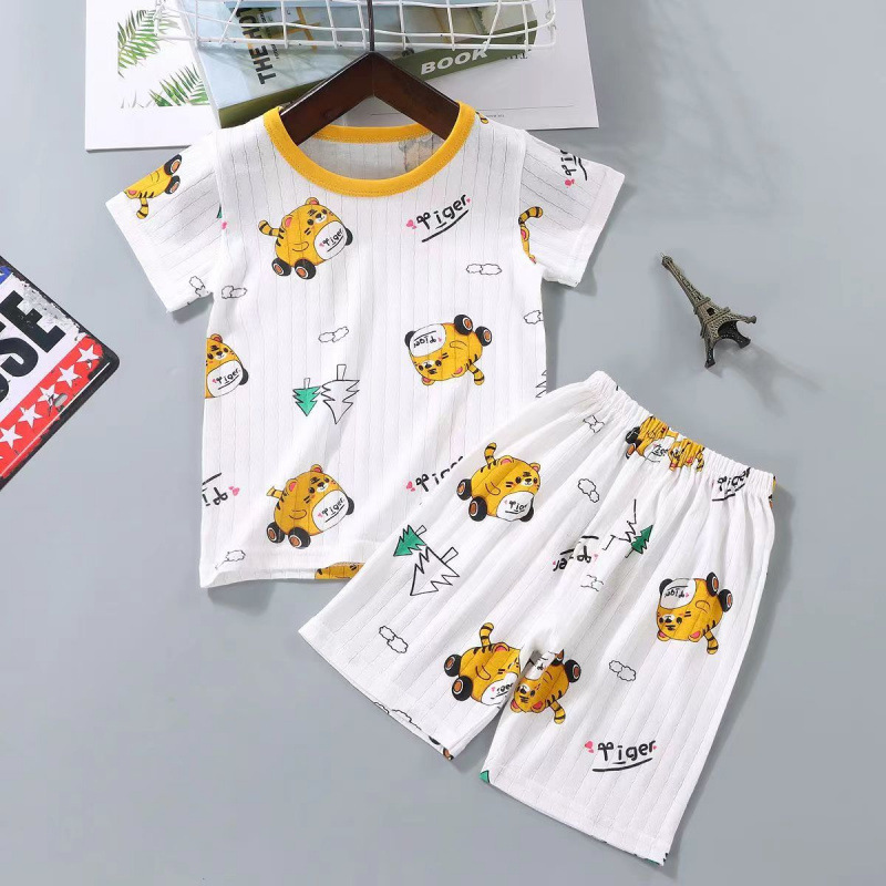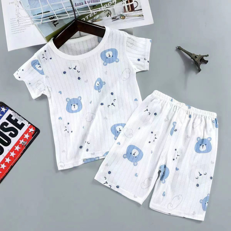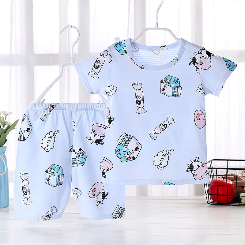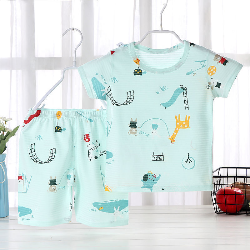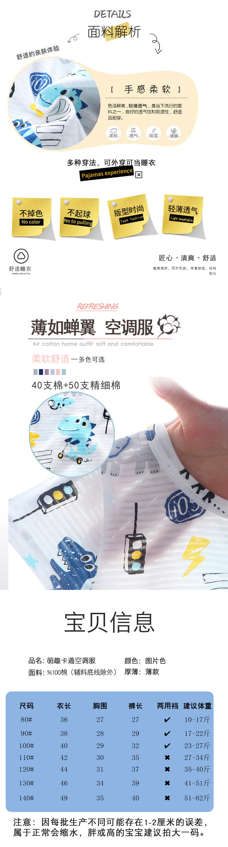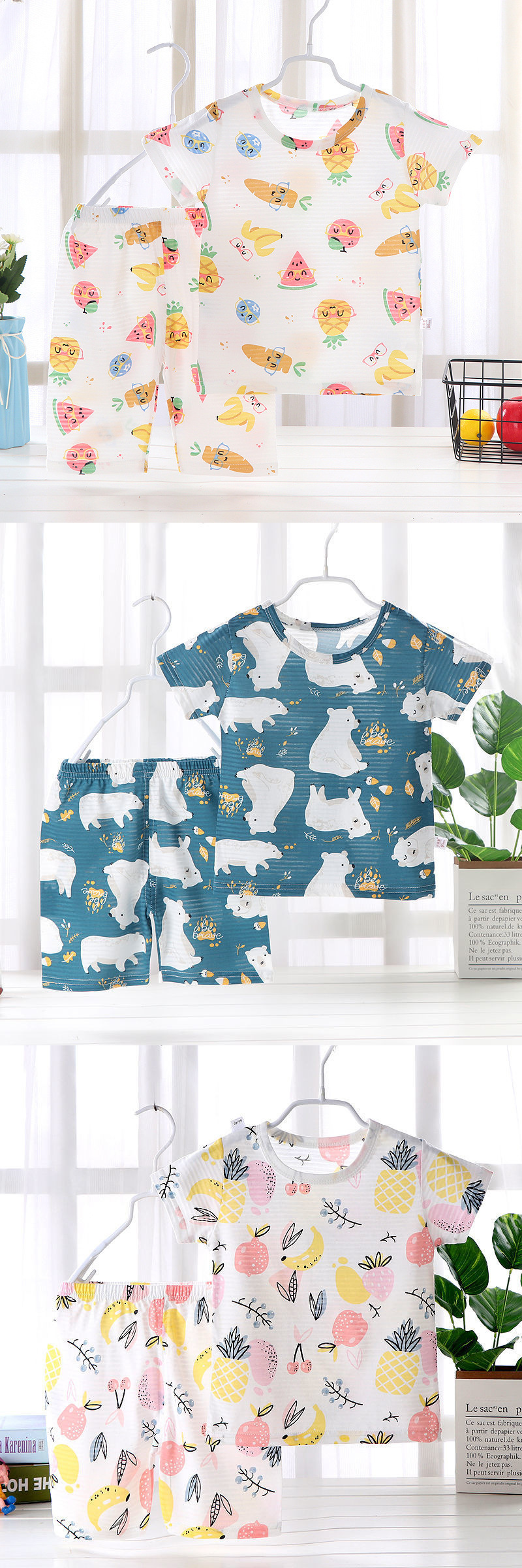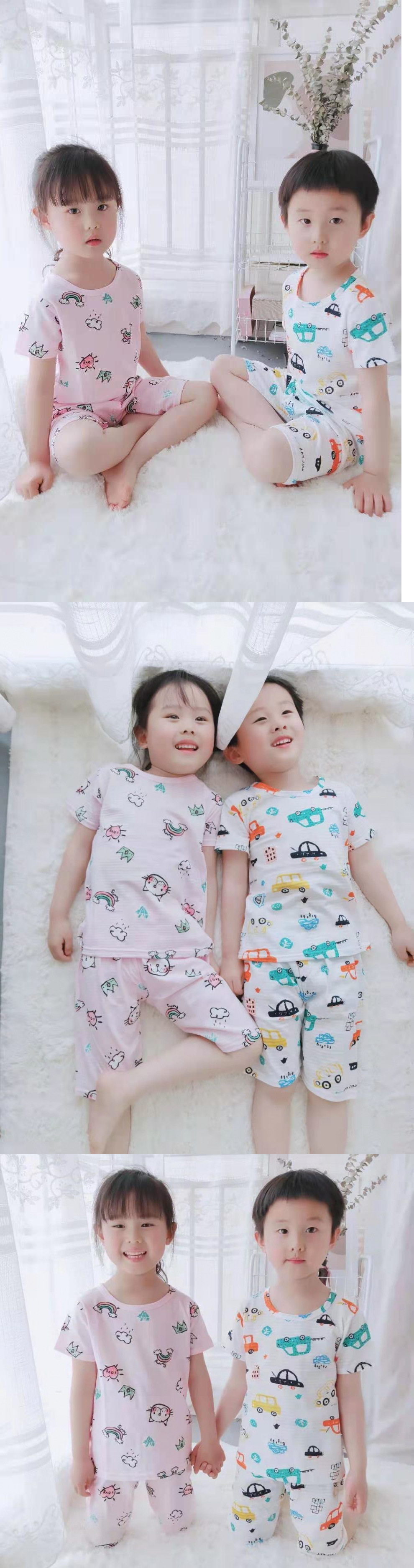 여름 어린이 반팔 양복 순수 코튼 대나무 면화 에어컨 의류 홈 의류 잠옷 소년과 소녀 반팔스토어 가기