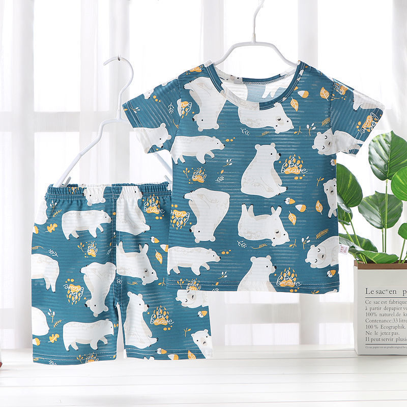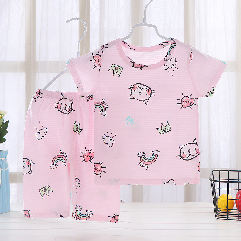 여름 어린이 반팔 양복 순수 코튼 대나무 면화 에어컨 의류 홈 의류 잠옷 소년과 소녀 반팔