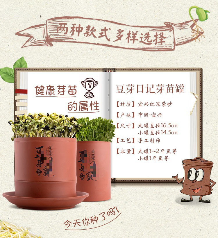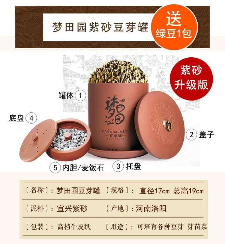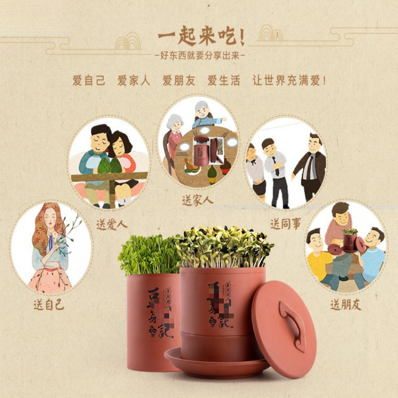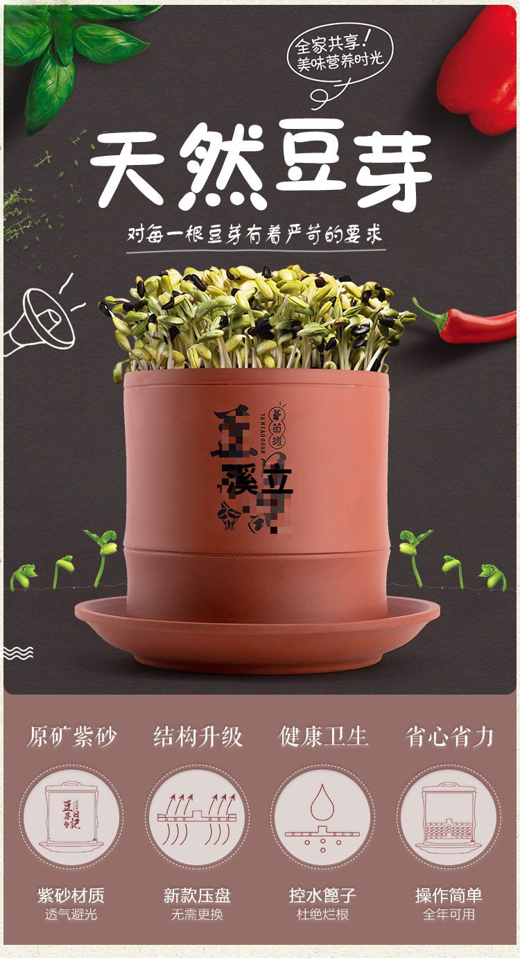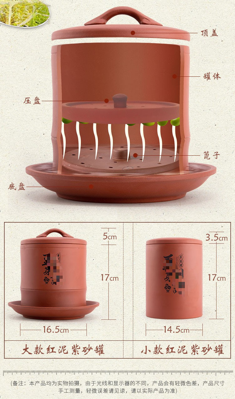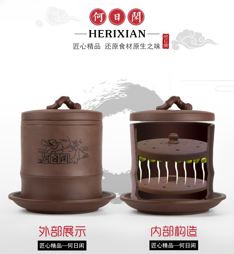 콩나물 항아리, 생콩나물 기계, 가정용 도자기, 완전 자동 대용량 콩나물 화분, 보라색 모래 수제 통스토어 가기