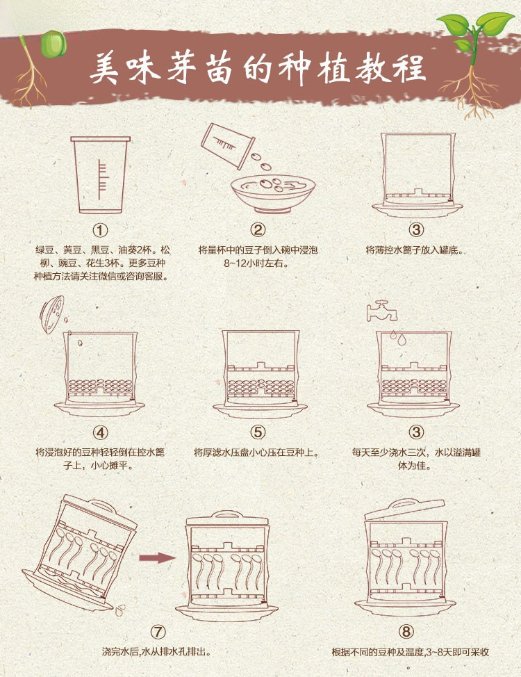 • 콩나물병은 3~5인이 사용하기에 적합합니다. 콩 3팩이 포함되어 있습니다.