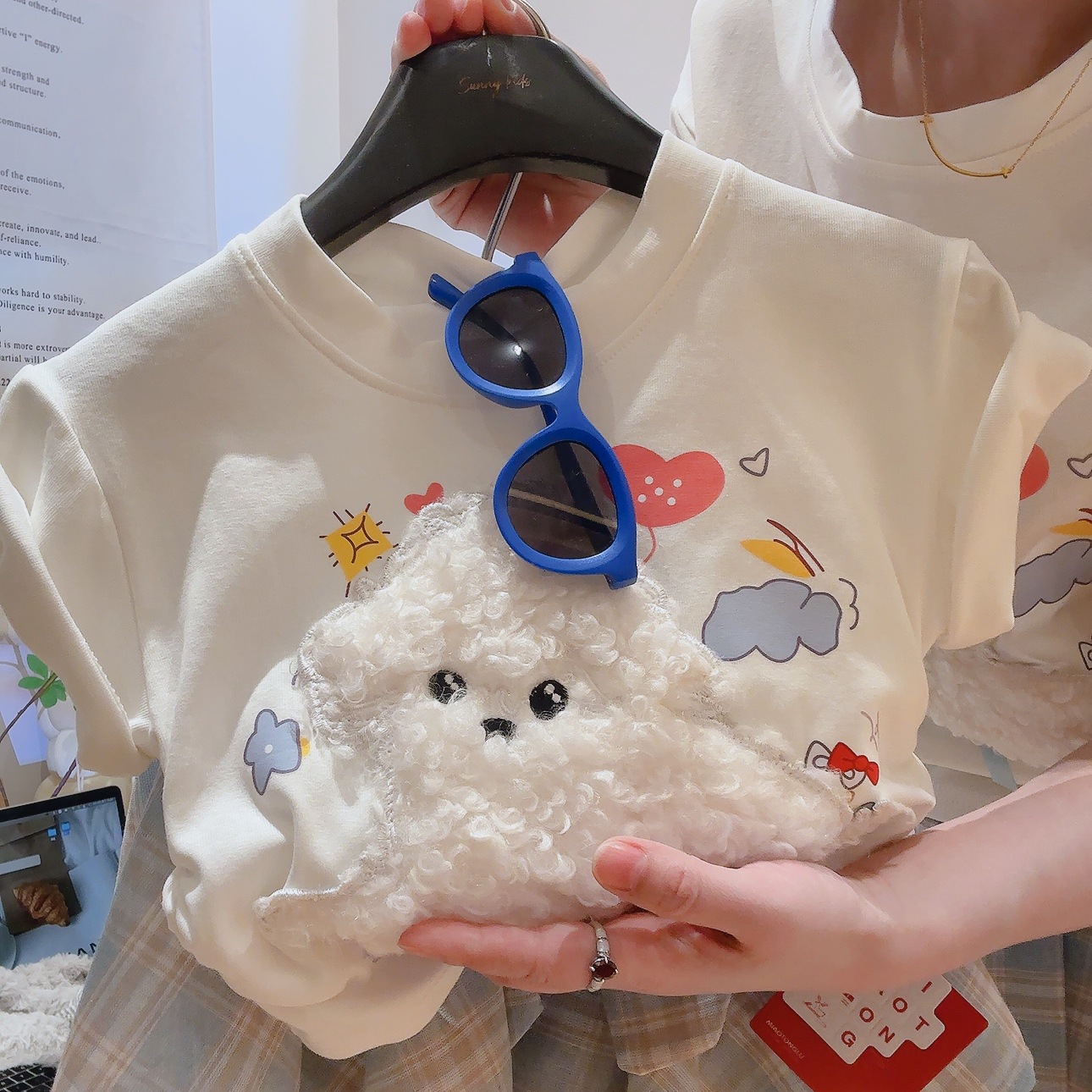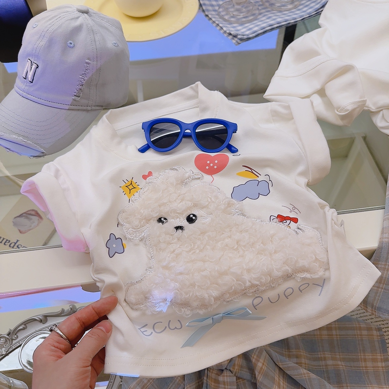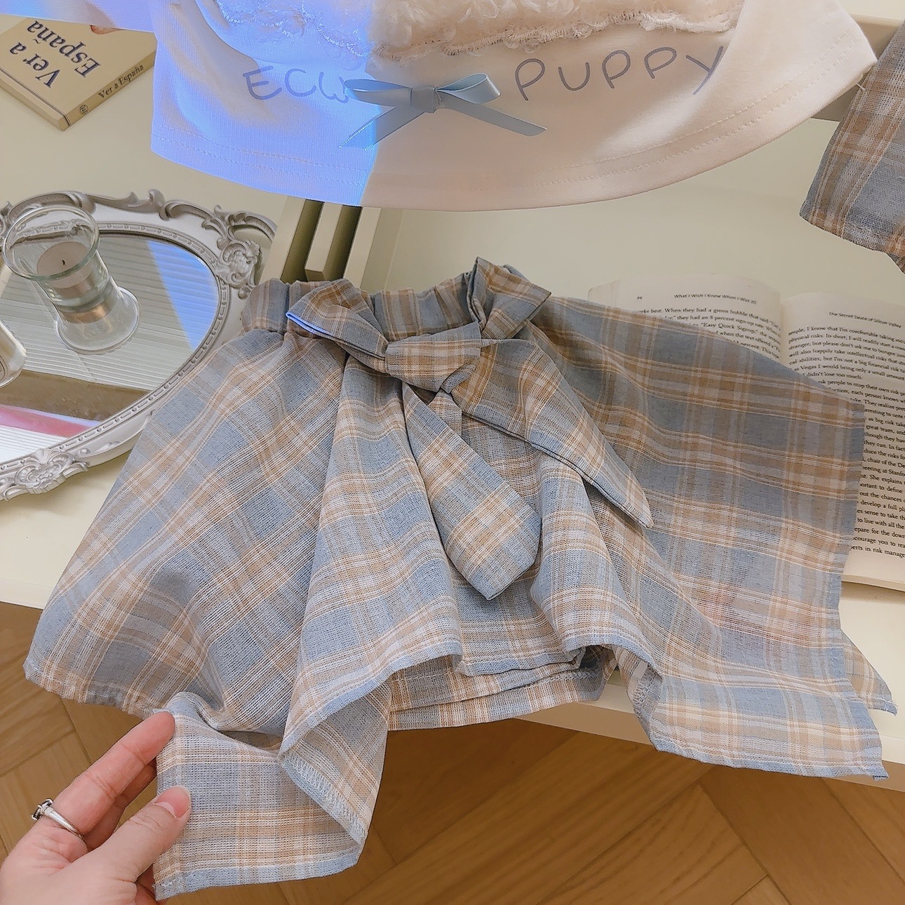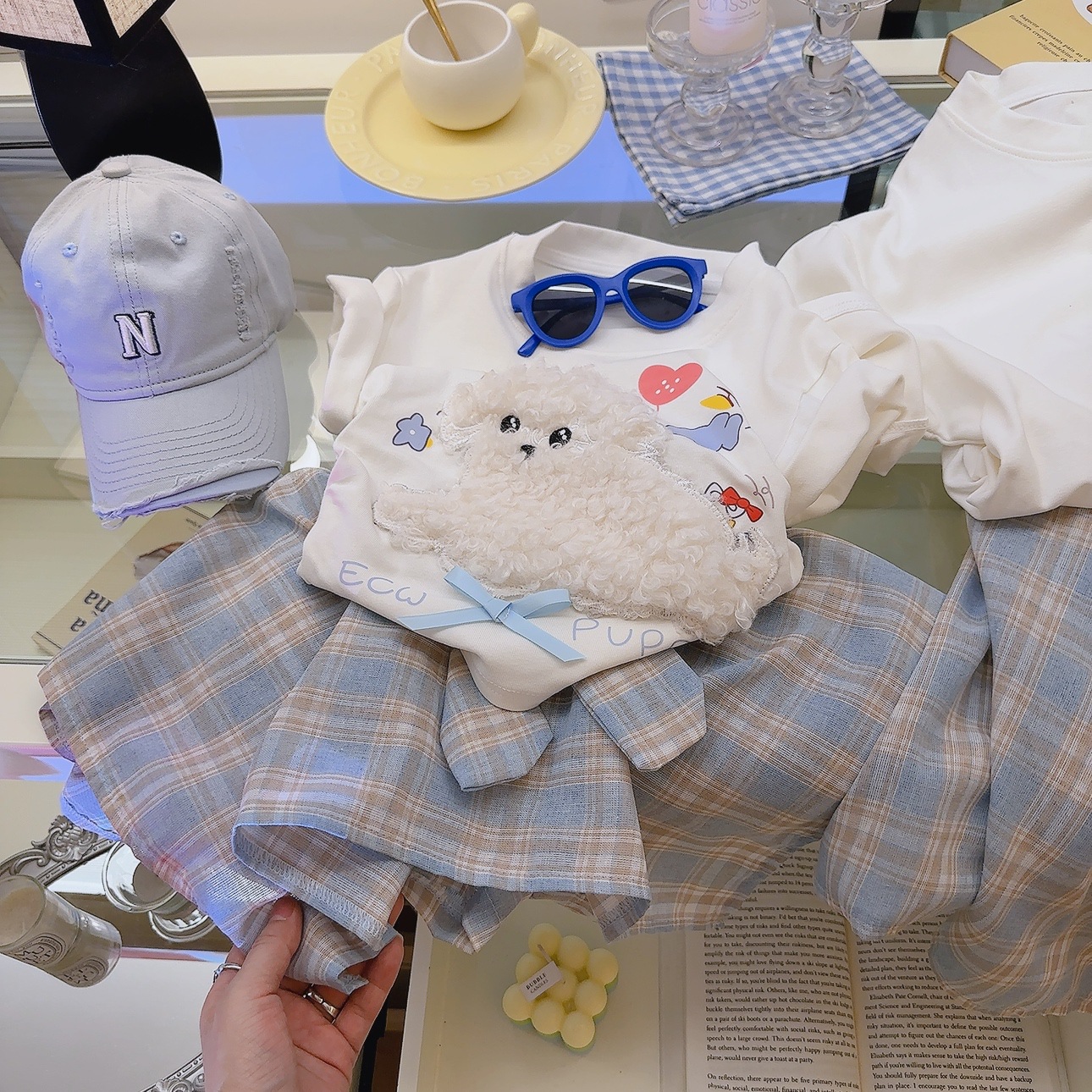 부모-자식 소녀 2025 여름 폭발 새로운 스타일 만화 짧은 소매 상단 체크 무늬 스커트 투피스 세트스토어 가기