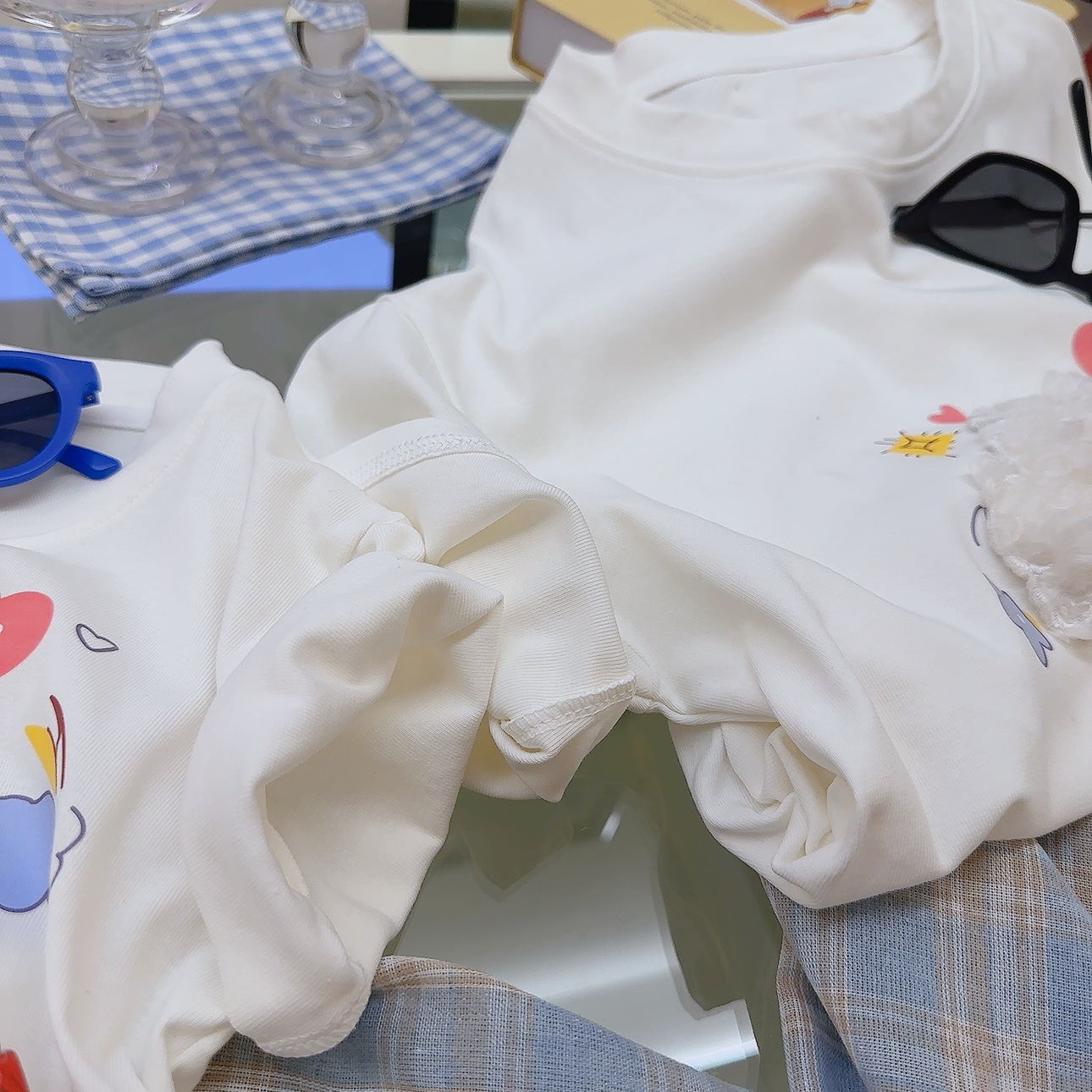 부모-자식 소녀 2025 여름 폭발 새로운 스타일 만화 짧은 소매 상단 체크 무늬 스커트 투피스 세트