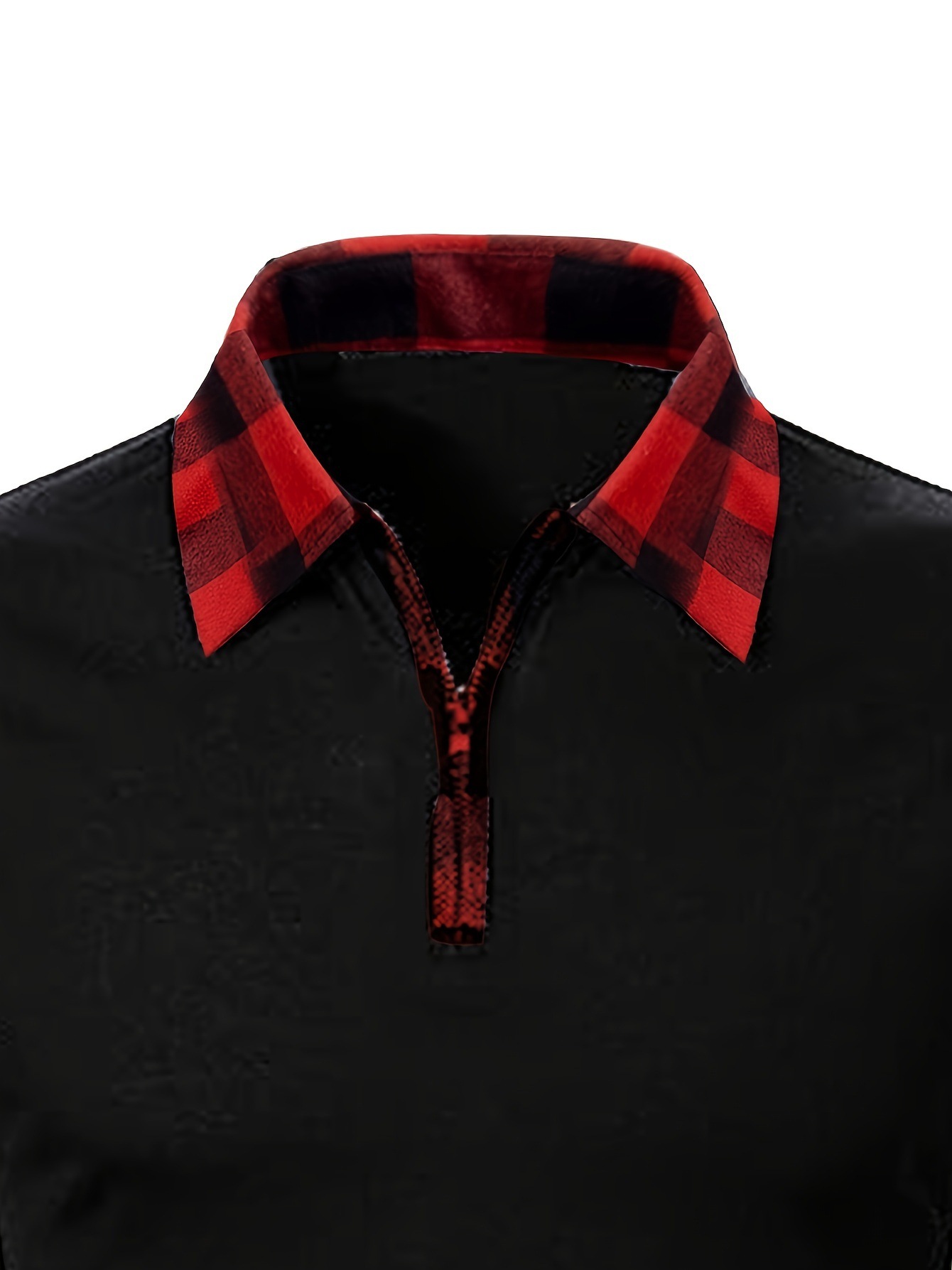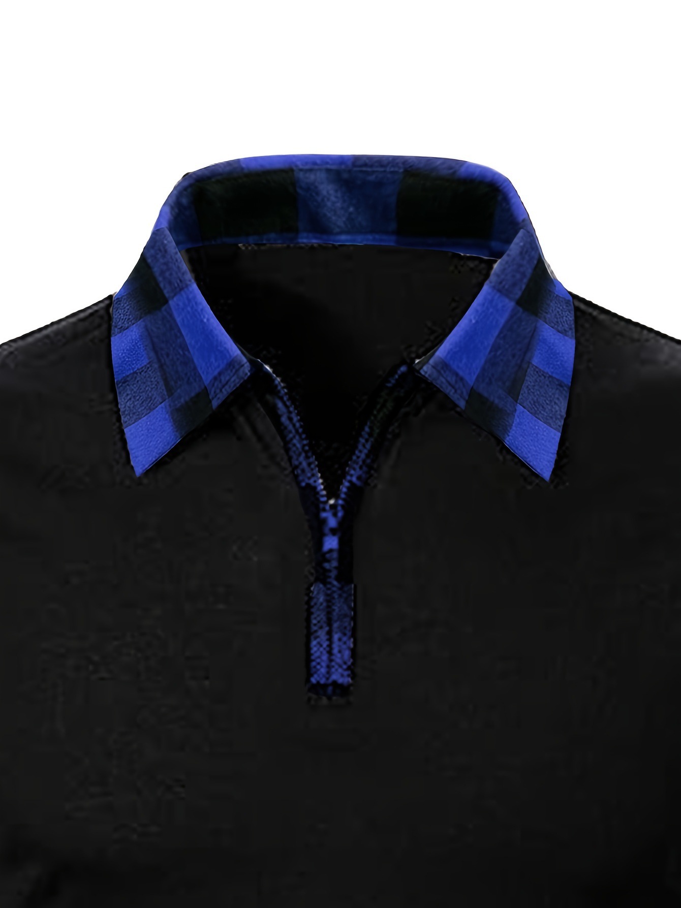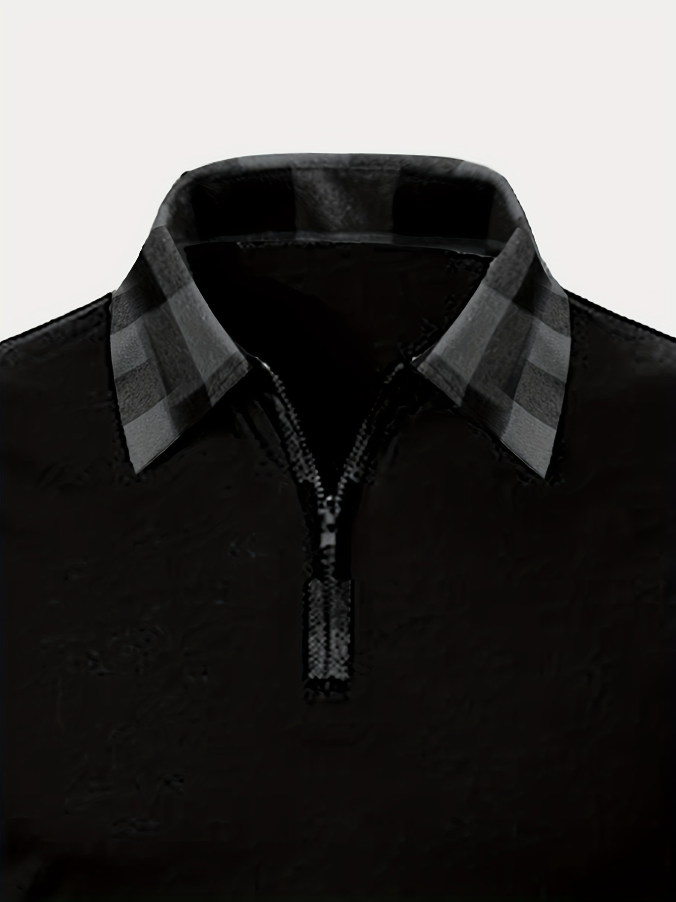 아마존의 인기 유럽 및 미국 사이즈 남성용 긴팔 플란넬 체크 무늬 칼라 폴로 셔츠 하프 지퍼 셔츠