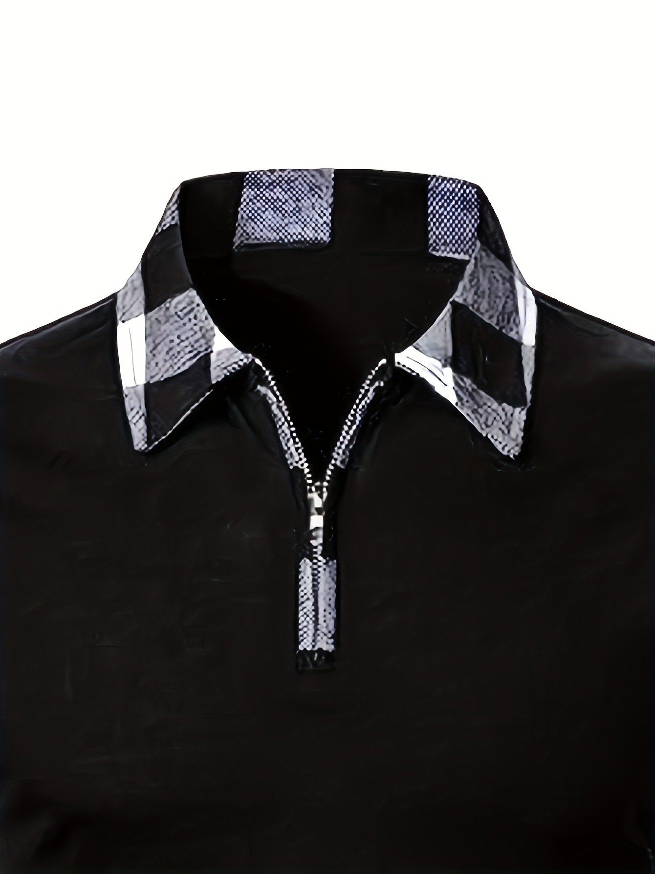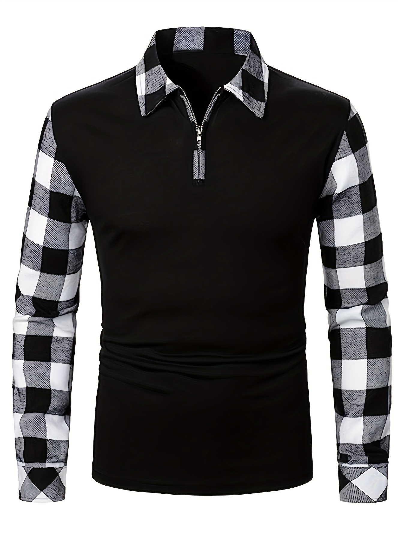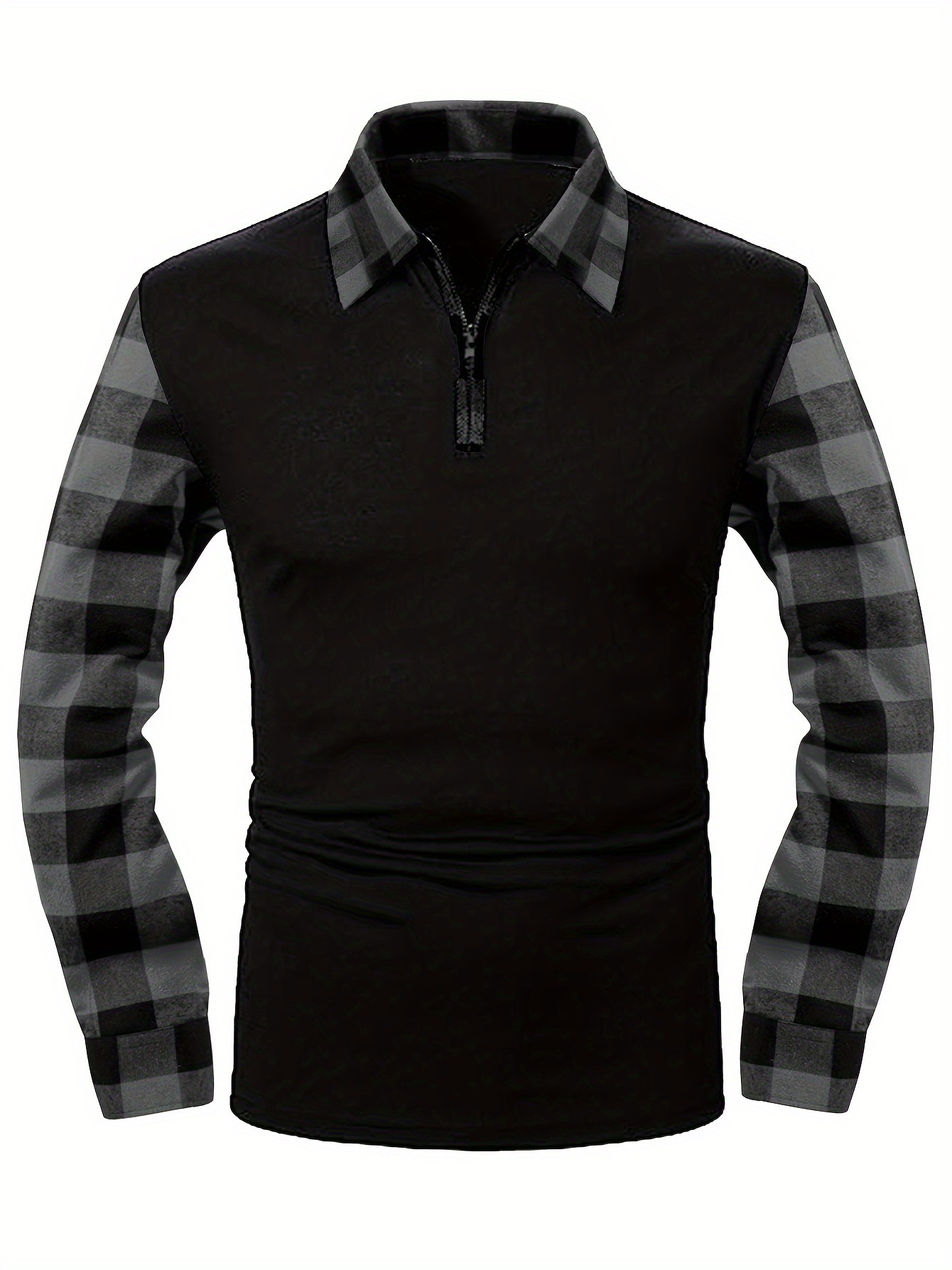 아마존의 인기 유럽 및 미국 사이즈 남성용 긴팔 플란넬 체크 무늬 칼라 폴로 셔츠 하프 지퍼 셔츠