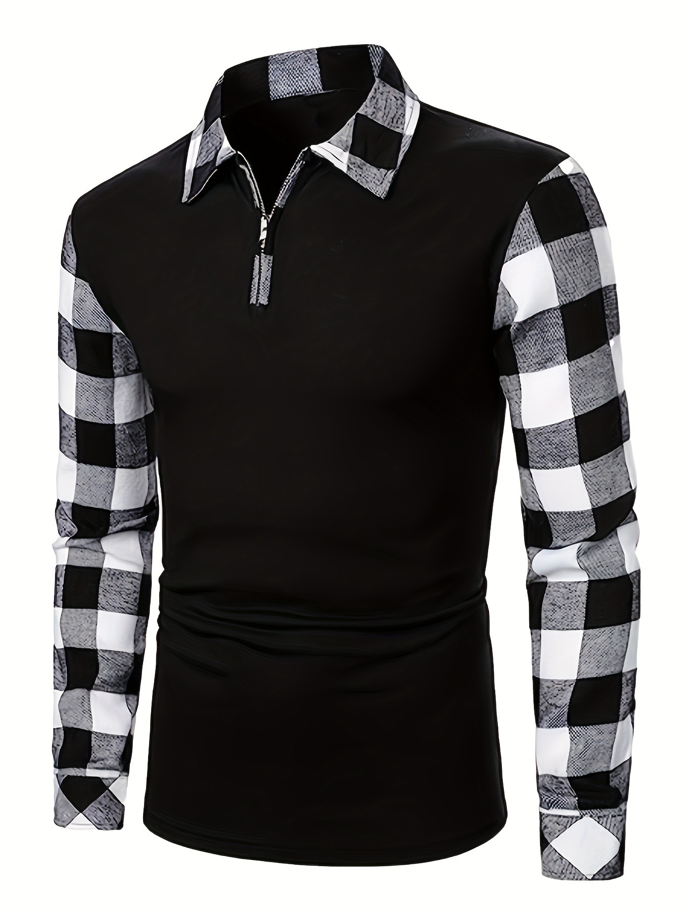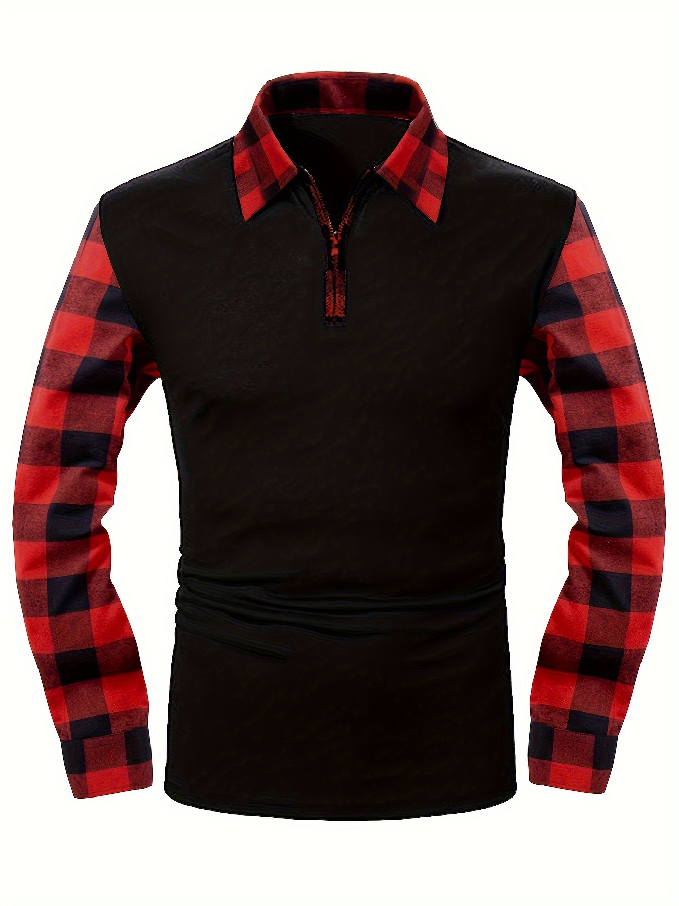 아마존의 인기 유럽 및 미국 사이즈 남성용 긴팔 플란넬 체크 무늬 칼라 폴로 셔츠 하프 지퍼 셔츠스토어 가기