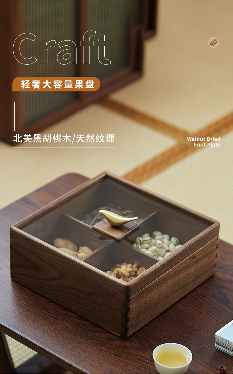 • 검은 호두 말린 과일 상자 - 구리 새 손잡이