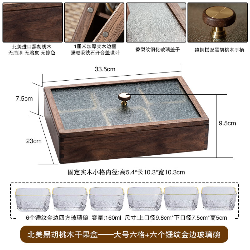 • 6칸 과일 상자 - 작은 유리 그릇 6개, 모두 검은 호두나무