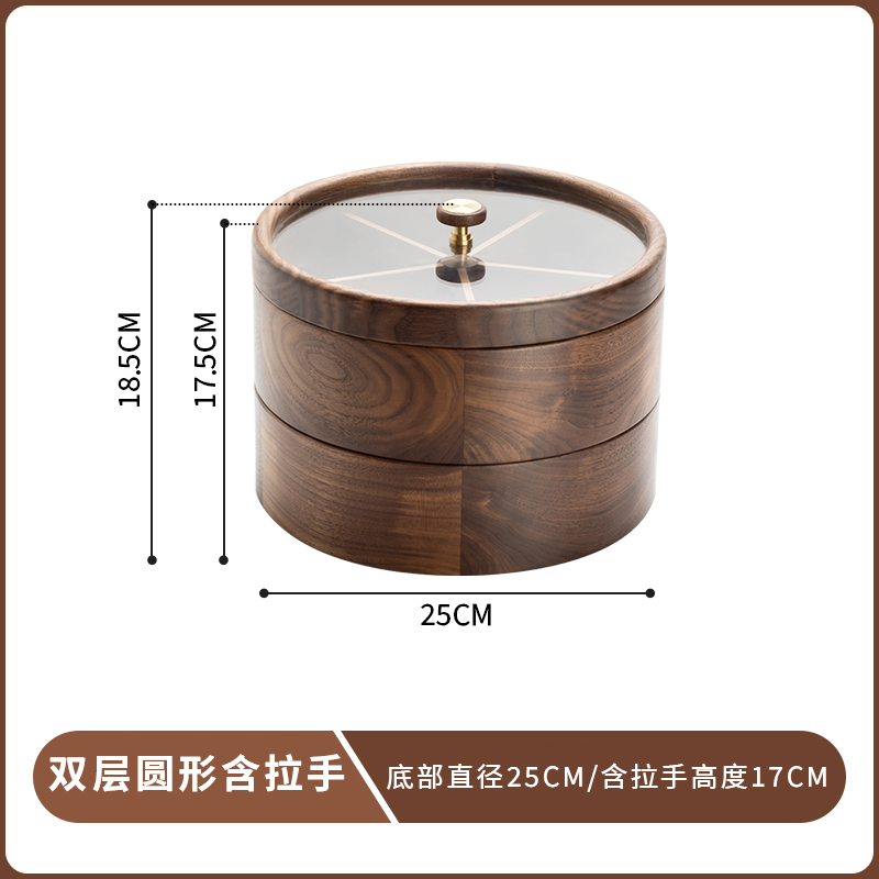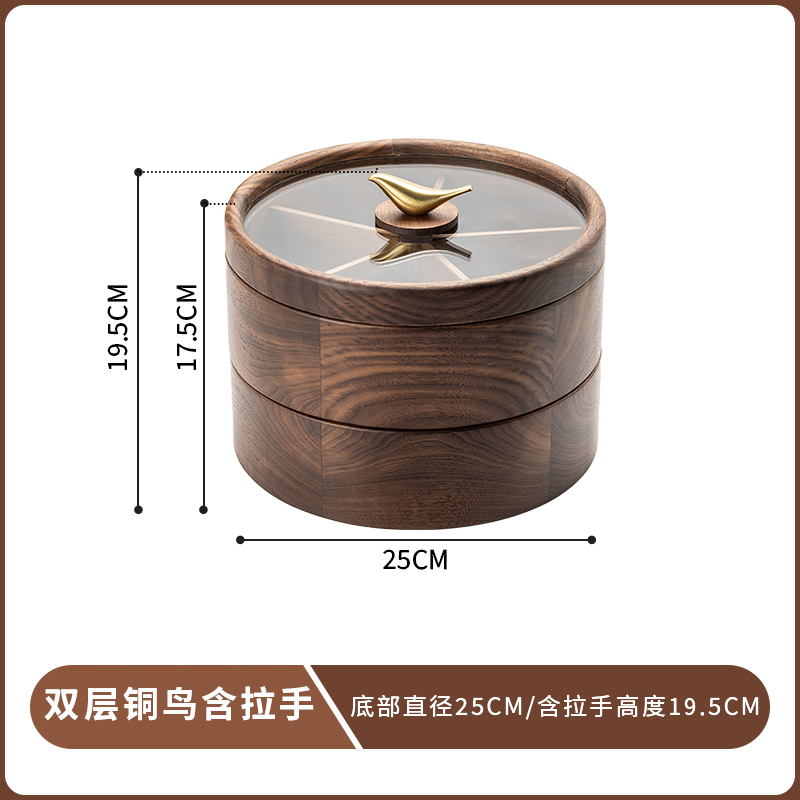 • 둥근 과일 상자 단층 구리 새 손잡이 전체 검정 호두