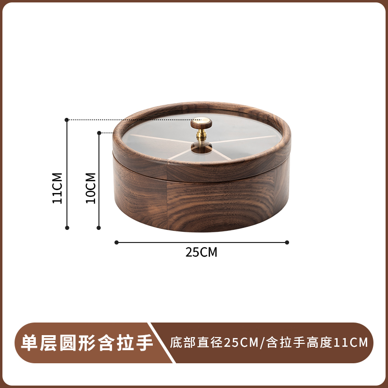 • 둥근 과일 상자 단층 원형 손잡이 올 블랙 호두