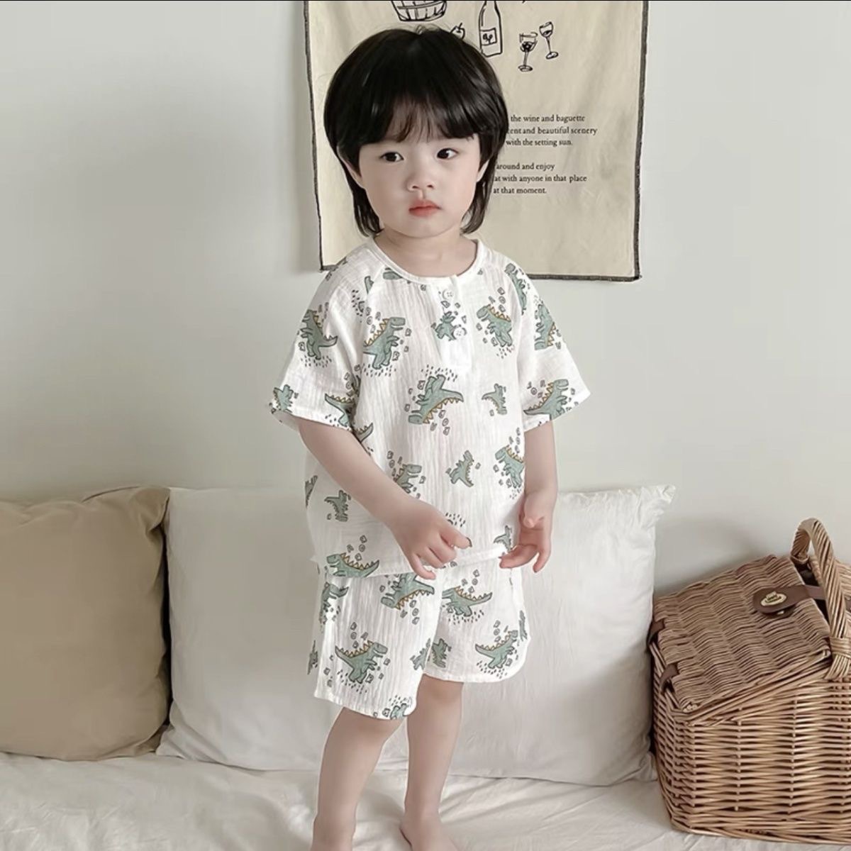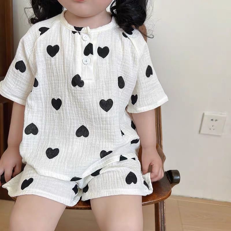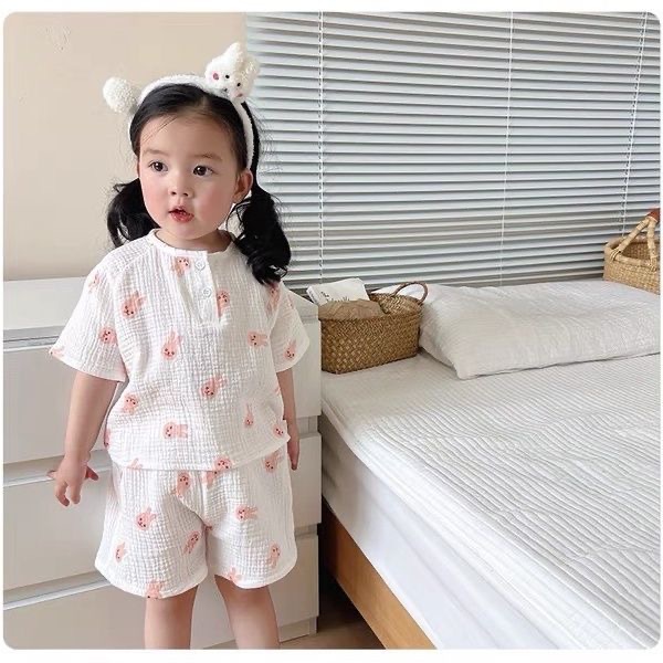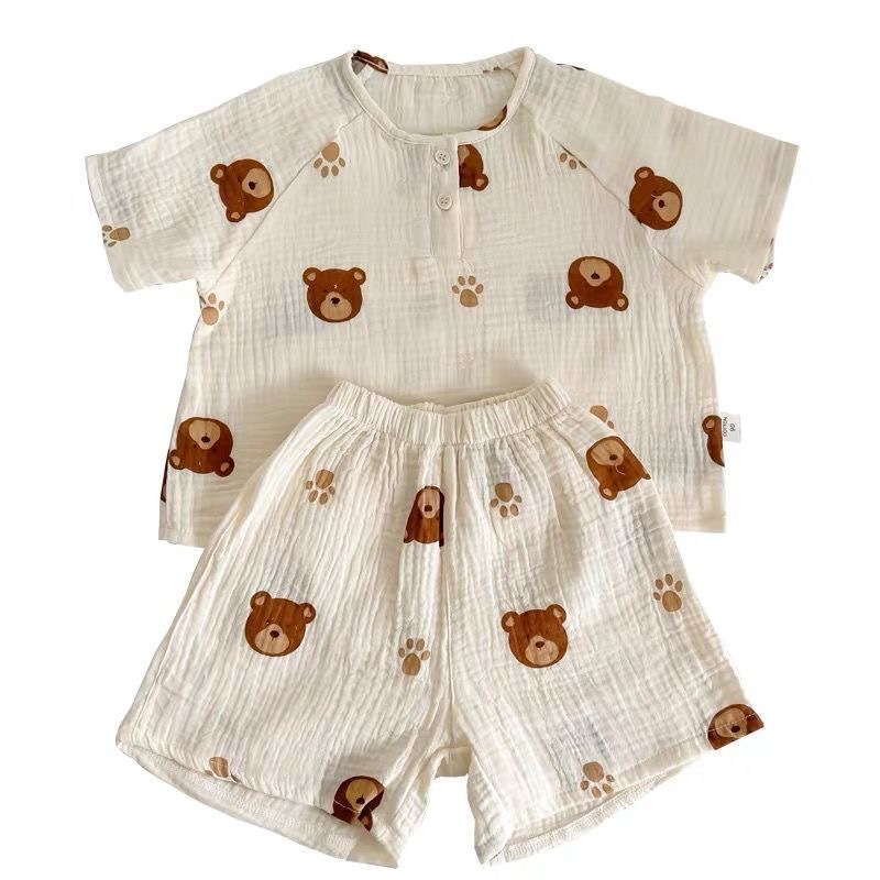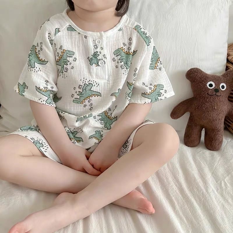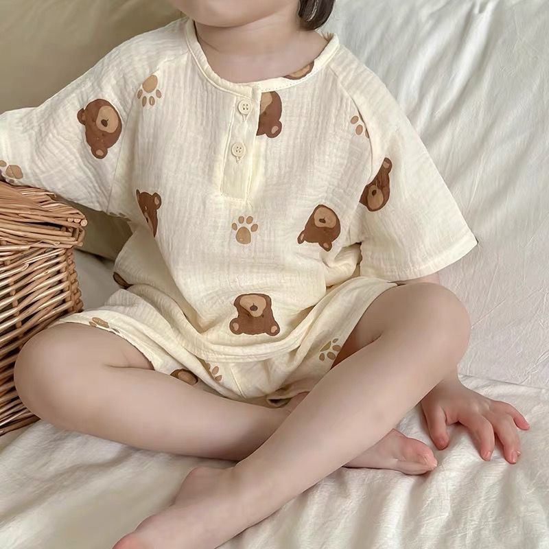 여름 아기 면 거즈 얇은 가정 의류 세트 소년과 소녀 면 거즈 잠옷 어린이 에어컨 의류 인터넷 연예인 스타일스토어 가기