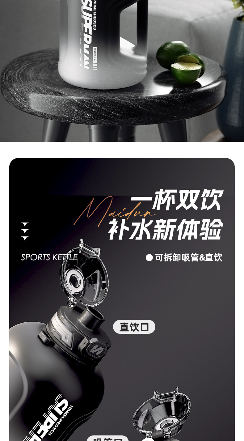 남아용 스포츠 물컵, 대용량 물병, 여름 피트니스 톤 버킷, 고온 방지 톤 버킷, 밀짚 스페이스 컵스토어 가기