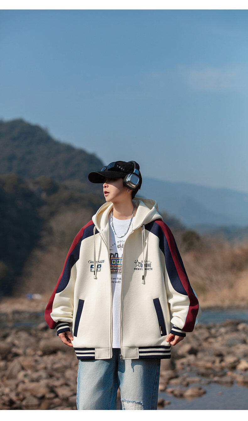 2025년 주요 추천 신상품 청소년 소년 야구 유니폼 후드 재킷 캐주얼 루즈하고 멋진 트렌디 재킷과 스웨트 셔츠