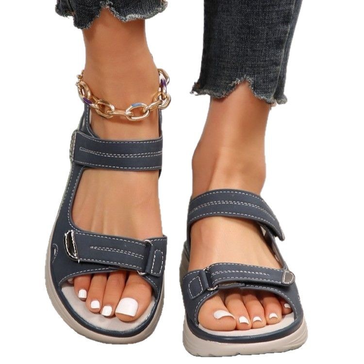 패션 여름 2025 새로운 샌들 여성 스포츠 바람 쐐기 슬리퍼 라이트 벨크로 비치 샌들스토어 가기