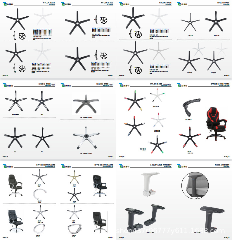 두꺼운 페인트 나일론 홈 공예 내구성 컴퓨터 사무실 의자 플라스틱 5성 발 의자 액세서리 베이스