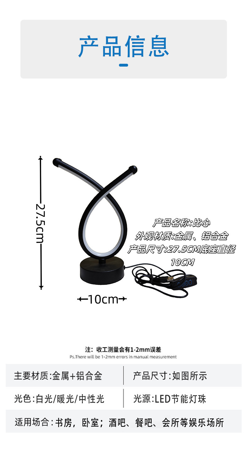 크리 에이 티브 금속 심장 테이블 램프 LED 바 USB 분위기 장식 따뜻하고 낭만적 인 데스크탑 클리어 바 e-스포츠 야간 조명