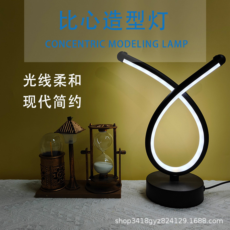 크리 에이 티브 금속 심장 테이블 램프 LED 바 USB 분위기 장식 따뜻하고 낭만적 인 데스크탑 클리어 바 e-스포츠 야간 조명스토어 가기