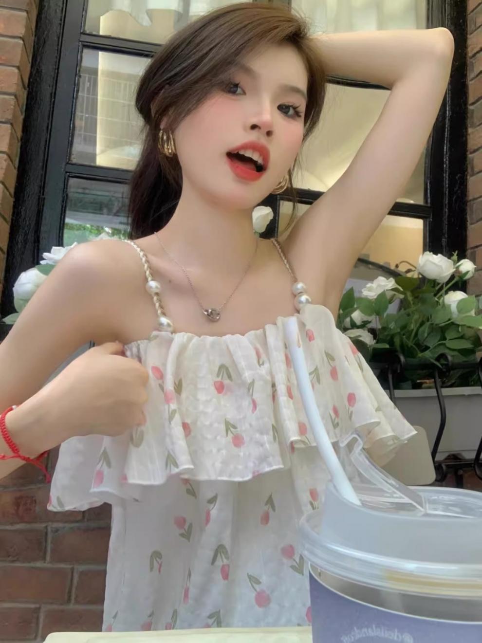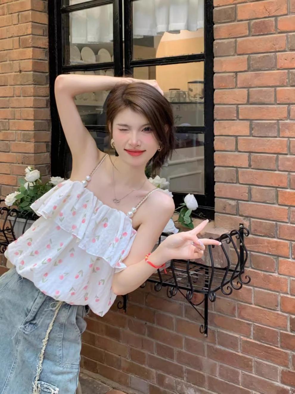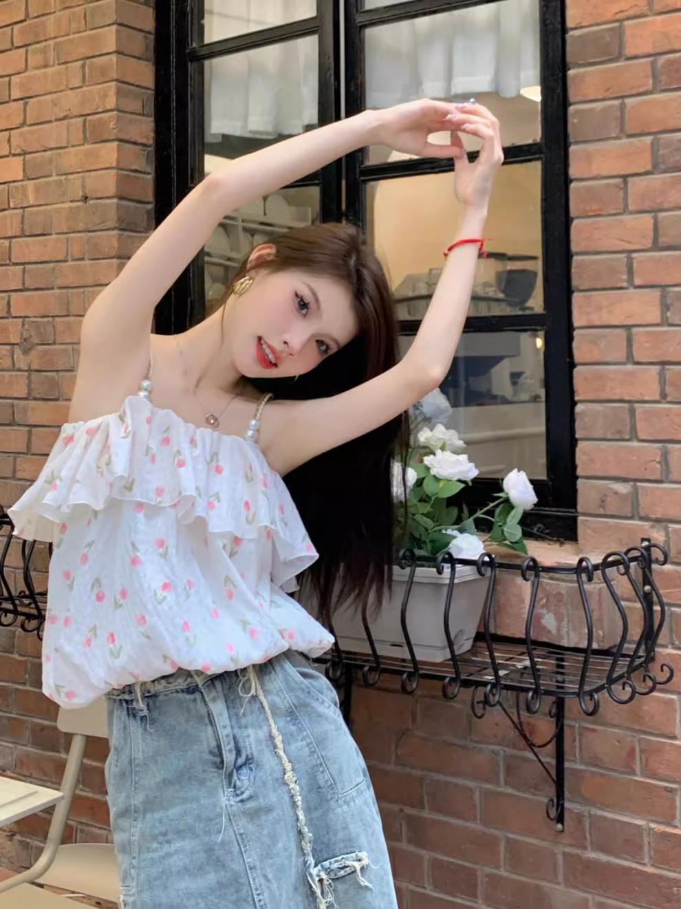 [5643명이 즐겨찾고 있는] 튤립 프렌치 플로럴 스위트 원숄더 쉬폰 셔츠 2025 여름 스타일 여성 젠틀 아우터스토어 가기