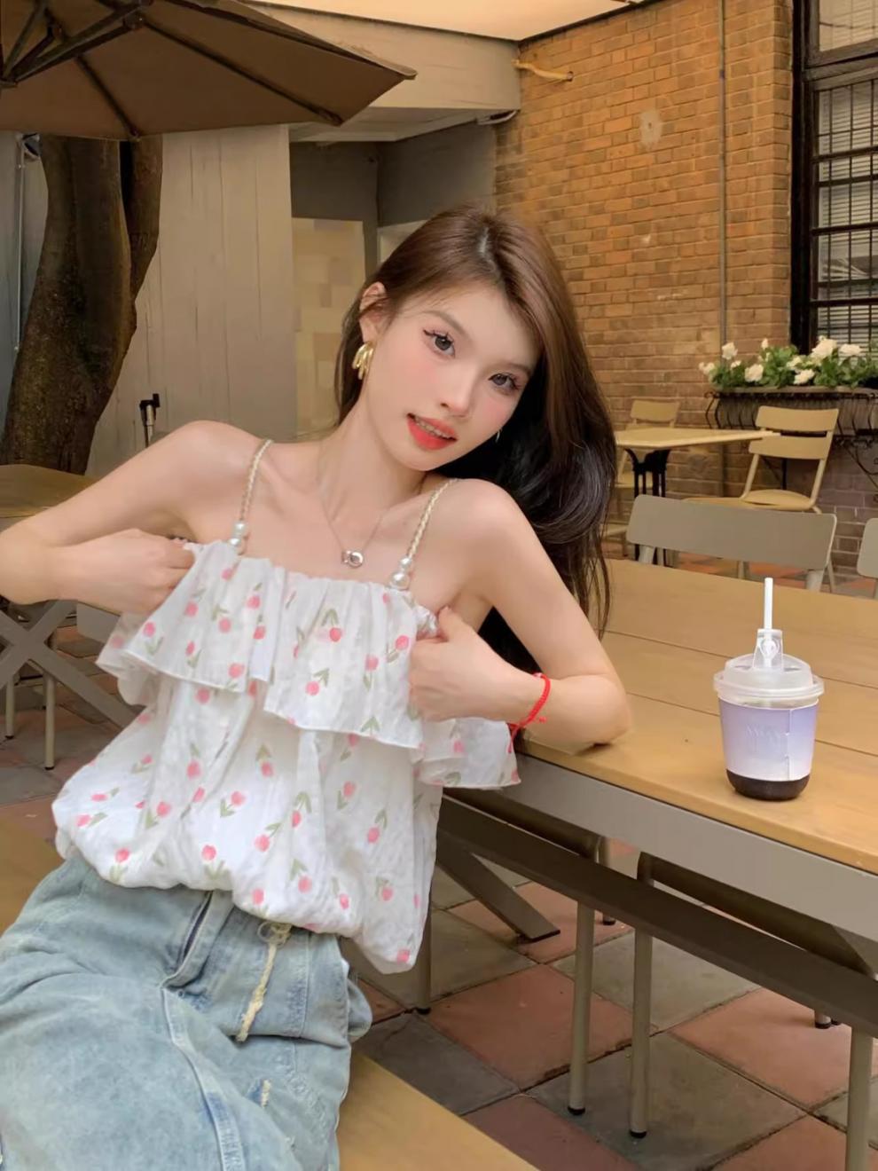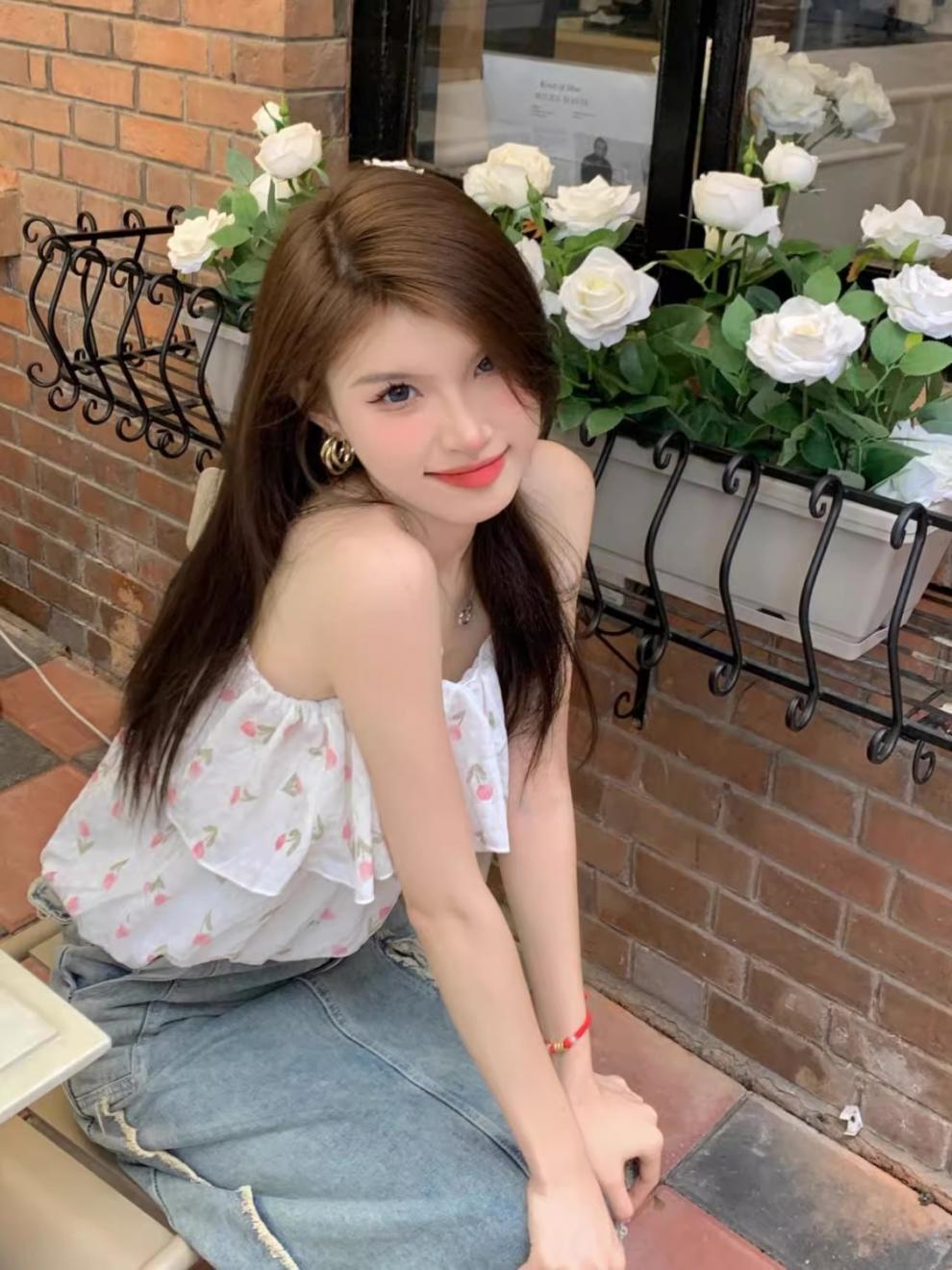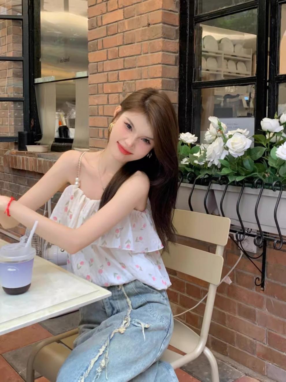 [5643명이 즐겨찾고 있는] 튤립 프렌치 플로럴 스위트 원숄더 쉬폰 셔츠 2025 여름 스타일 여성 젠틀 아우터스토어 가기