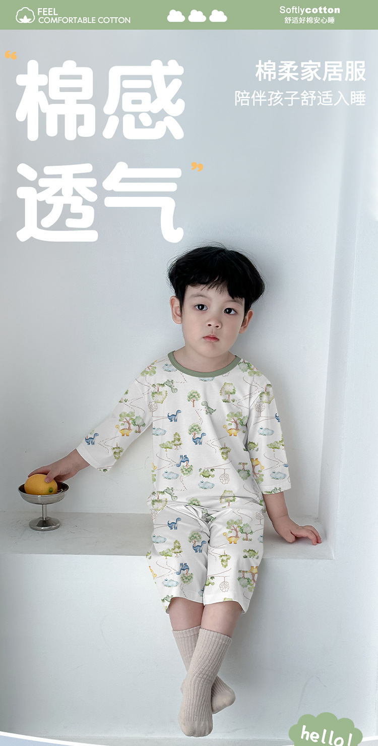 어린이 여름 잠옷 느슨한 소년 소녀 7 점 소매 세트 머리카락을 대신하여 lyocell 어린이 에어컨 의류 제조업체스토어 가기