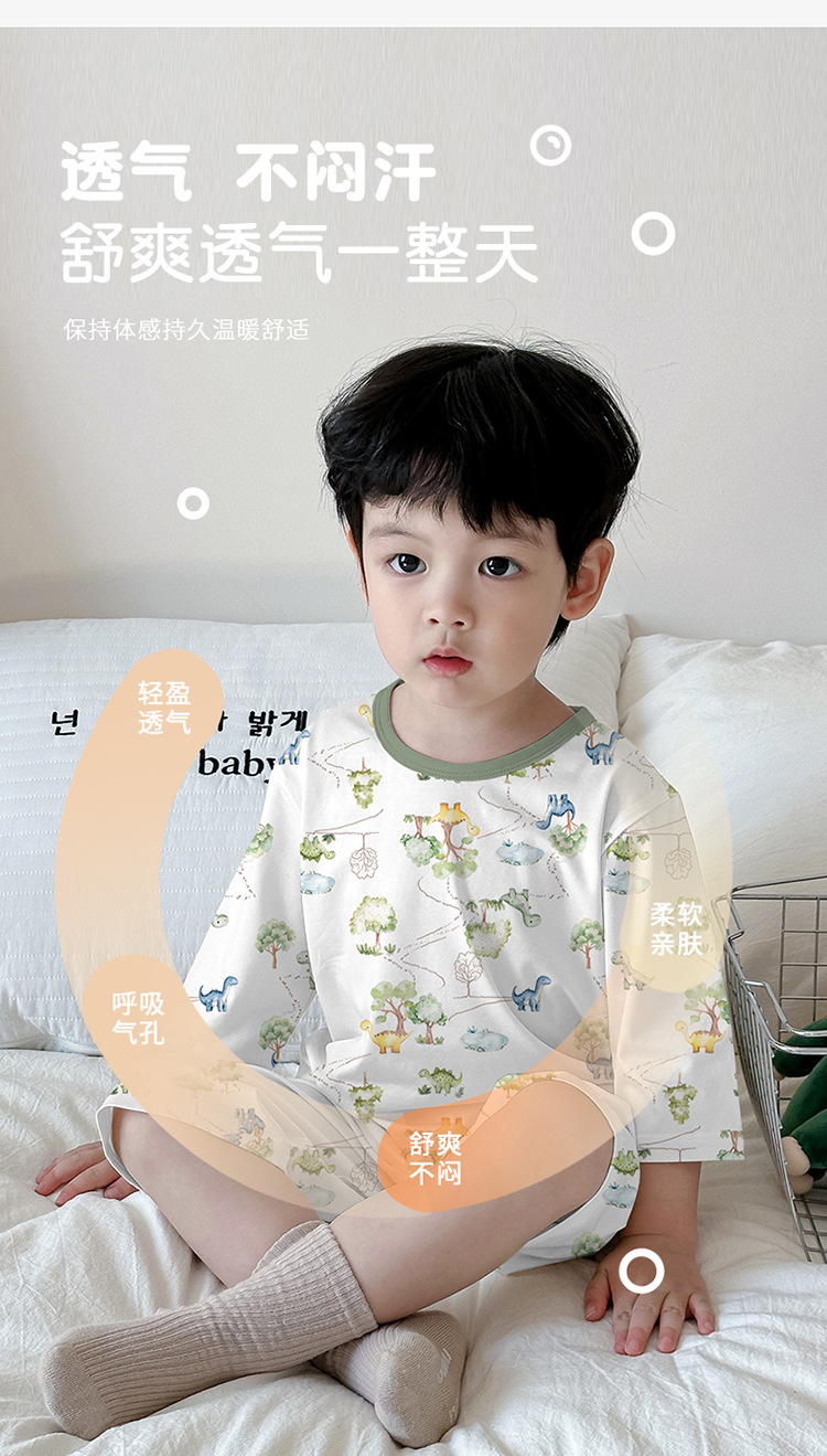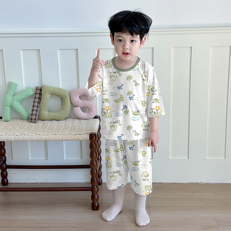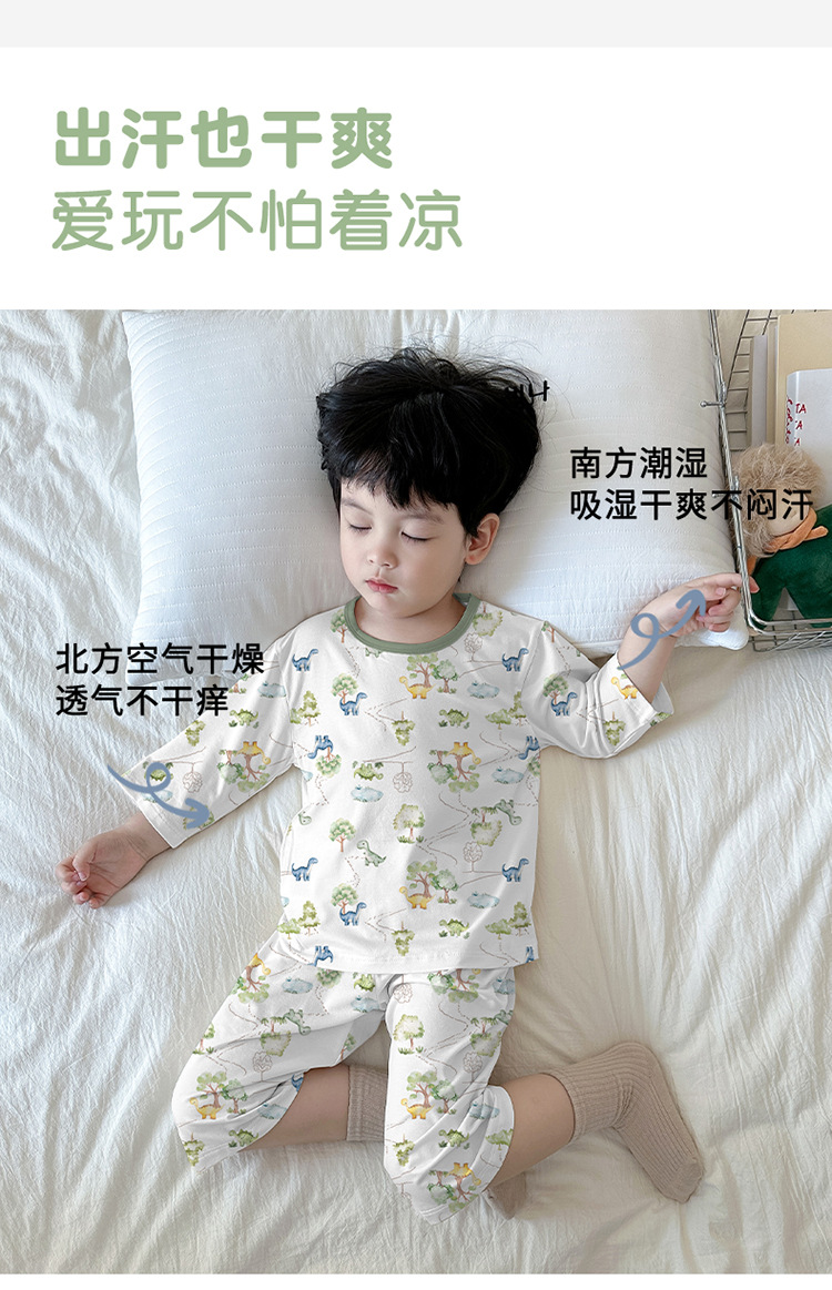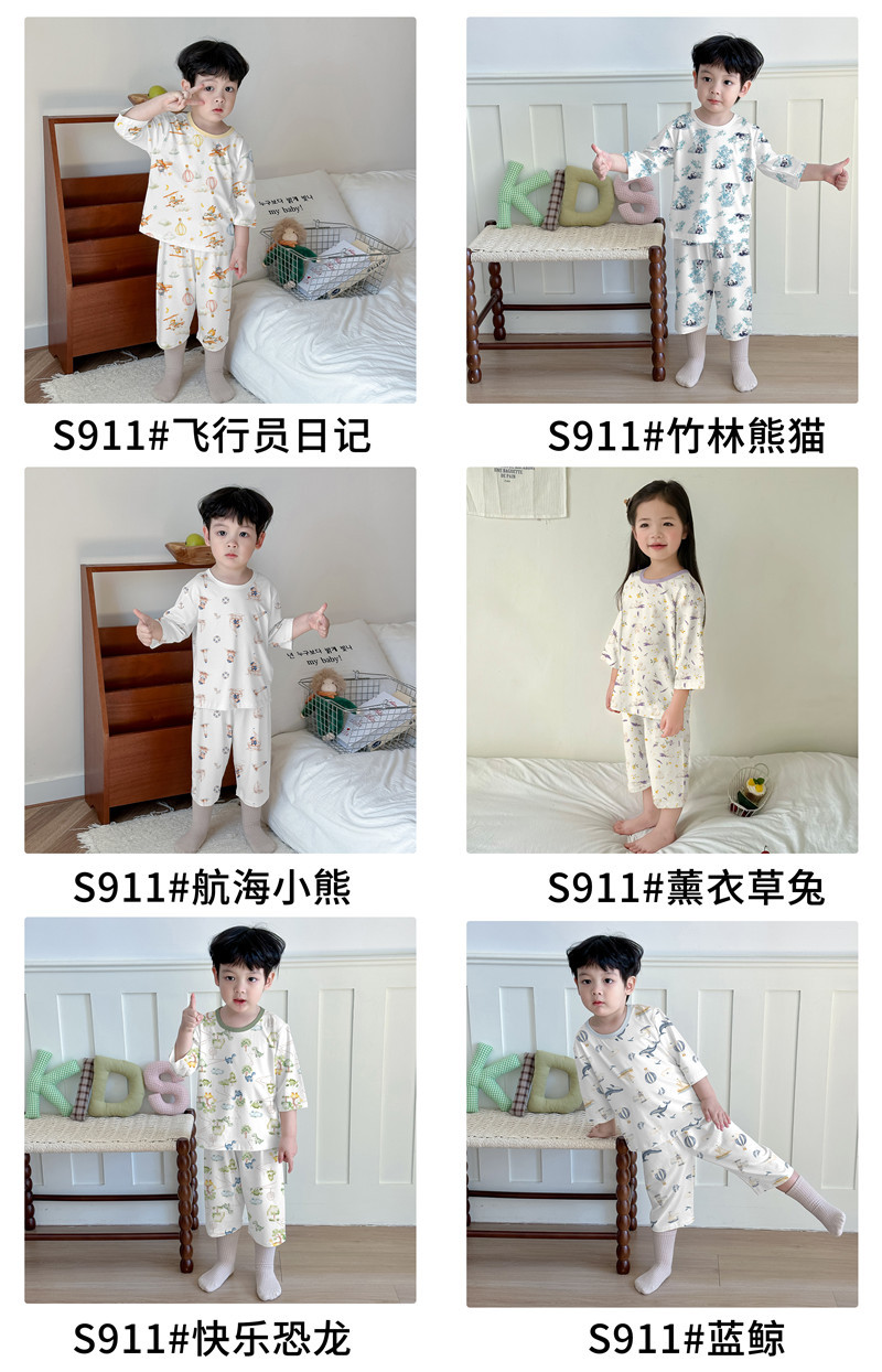 어린이 여름 잠옷 느슨한 소년 소녀 7 점 소매 세트 머리카락을 대신하여 lyocell 어린이 에어컨 의류 제조업체